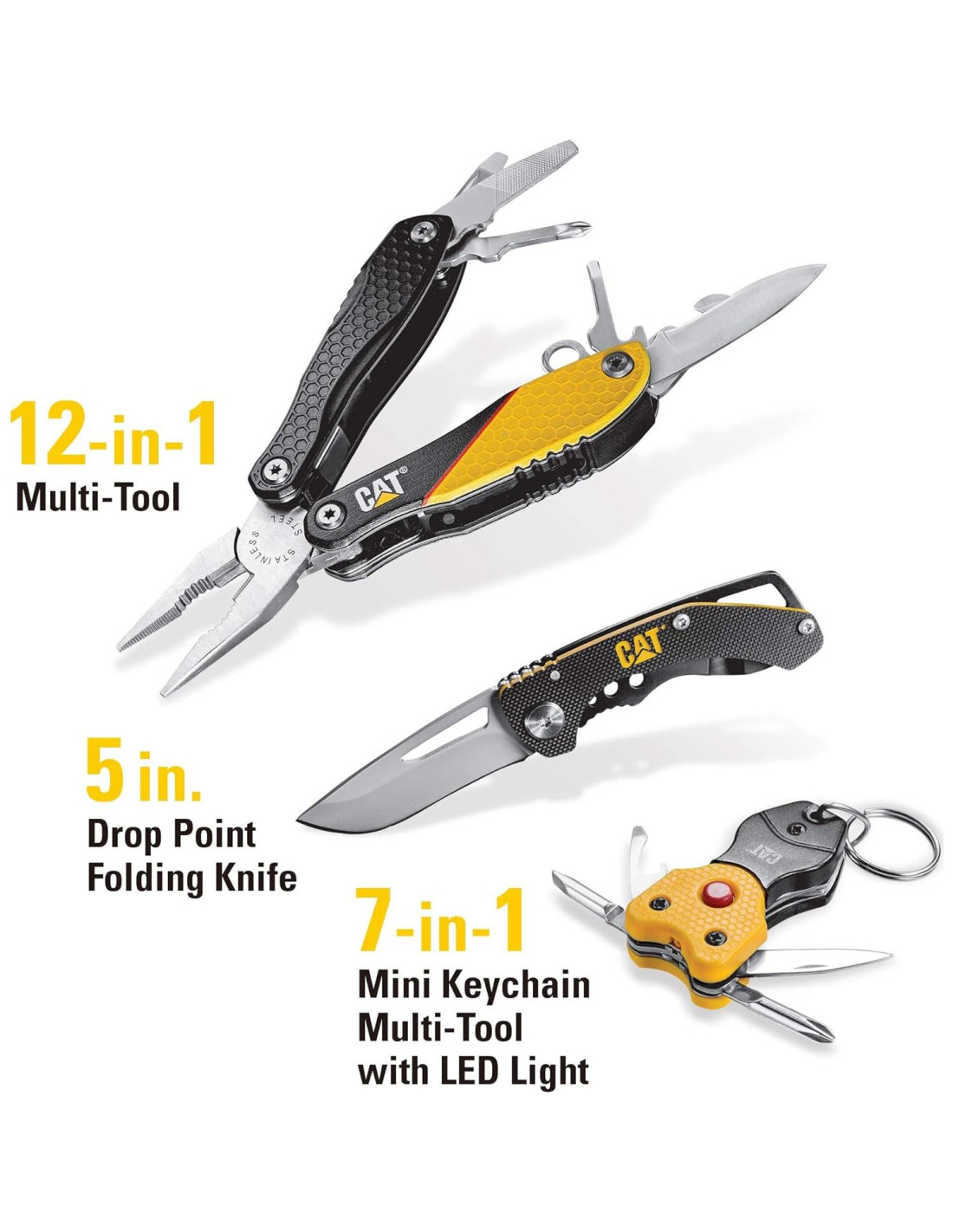 - Componentes incluidos: 1pc-Cuchillo Plegable de 5", 1pc-Herramienta Multifuncional 12-en-1, 1pc-Mini Herramienta Multifuncional con Luz