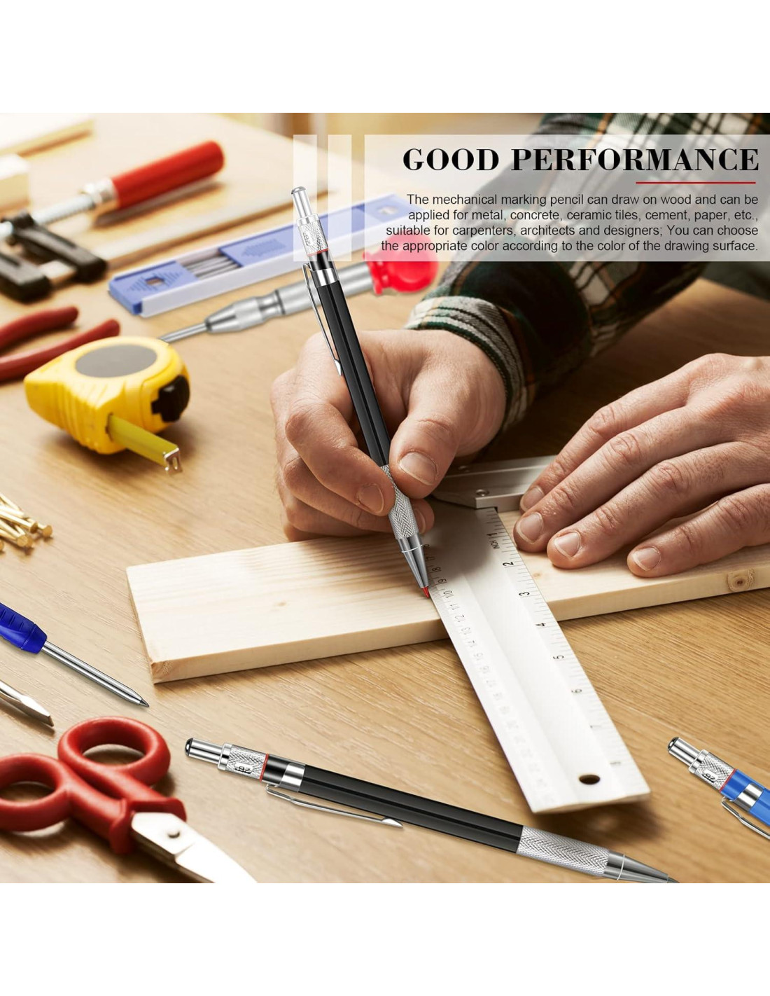 - Lápices para Carpinteros Portátiles: el lápiz mecánico para carpinteros tiene recargas ricas, lo que te permite usarlo en diferentes lugares; Es fuerte, difícil de romper o agrietar, se adapta a una variedad de superficies y puede aplicarse durante mucho tiempo; El diseño del clip también facilita colgarlo en el bolsillo, fácil de usar y difícil de perder