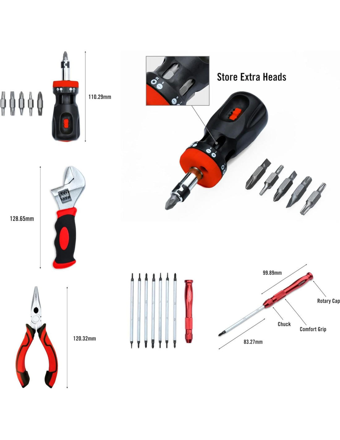 AFRONTAR CADA PROYECTO CON PODER Las secuelas de Thor: Ragnarok nos dejaron a todos perplejos. ¿Cómo puede el Martillo indestructible de Thor ser destrozado tan fácilmente por la hermana de Thor, Hela? ¡No temas! Mighty Thor, también conocida como Jane Foster, volvió a forjar Mjolnir, reavivando el martillo y devolviendo los poderes de reparación del hogar a aquellos que pueden poseer la fuerza. La "versión agrietada" del kit de herramientas presenta una variedad de gadgets útiles. Ideal para cualquier Dios o Diosa del Trueno que necesite afrontar su lista de tareas. HERRAMIENTAS PODEROSAS FORJADAS EN ASGARD Después de terminar tus arreglos, las herramientas se pueden guardar dentro de la carcasa del Martillo para esperar su próxima invocación. No solo es este kit de herramientas un imprescindible para proyectos en casa, sino que también es una pieza estruendosa de decoración asgardiana. Disfruta del poder de Mighty Thor mientras empuñas este juego de herramientas que se puede usar para defender Asgard, Midgard y tu hogar. Este juego de herramientas de 91 piezas de Martillo de Thor Mighty Marvel con licencia oficial está prácticamente volando de los estantes y en las manos de los dignos. ¿QUÉ INCLUYE? (1) Martillo de Cabeza Redonda de 12 Onzas (1) Llave Ajustable de 6 Pulgadas (1) Pinza de Punta Larga de 5 Pulgadas (1) Nivel de Burbuja (1) Cinta Métrica de Tela (20) Chinchetas (10) Juego de Ganchos (6pcs 9.07 kg, 4pcs 13.61 kg) (26) Juego de Ganchos (4pcs 22.68 kg, 10pcs 4.54 kg, 12pcs Alfombrillas) (20) Bridas (8) Juego de Destornilladores de Precisión con 7 Puntas Inversibles incluyendo: (3) Cuchillas de Ranura Simple y Ranura Cruzada de Doble Extremo (1) Tipo Pz de Doble Extremo: No. 0 x No. 1 (2) Estrella Tx de Doble Extremo: T5 x T7 - T6 x T8 (1) Hexágono de Doble Extremo: H2mm x H2.5mm (1) Mango de Destornillador de Metal (1) Destornillador de Carraca Stubby de 12 Pulgadas con: (6) Puntas de Doble Extremo de 30mm (1) Carcasa de Martillo que Mide Aproximadamente 38.1 x 22.86 x 15.24 cm