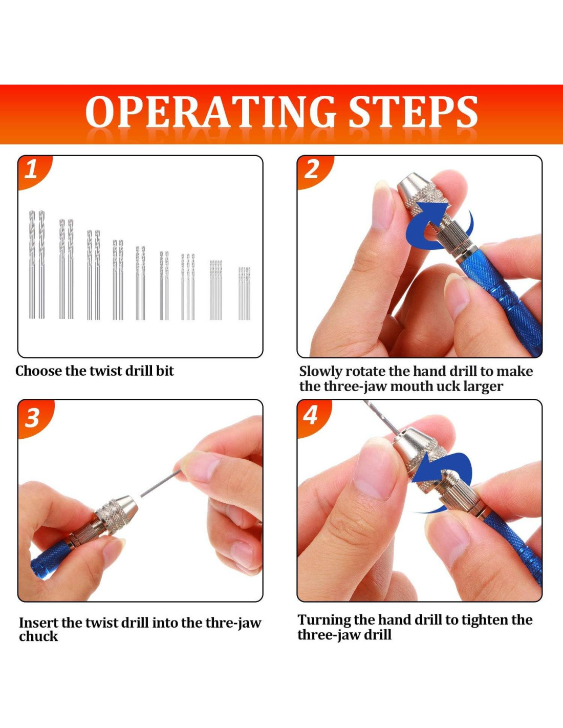 - Diseño reemplazable: la broca manual semiautomática está equipada con diferentes tamaños de brocas micro, proporcionando comodidad para elegir una adecuada y perforar agujeros de diferentes tamaños; Las brocas micro son adecuadas para trabajar con madera, plástico, goma, PVC, nuez, modelo, hueso, ángulo, ámbar, oliva, fibra de vidrio, etc.