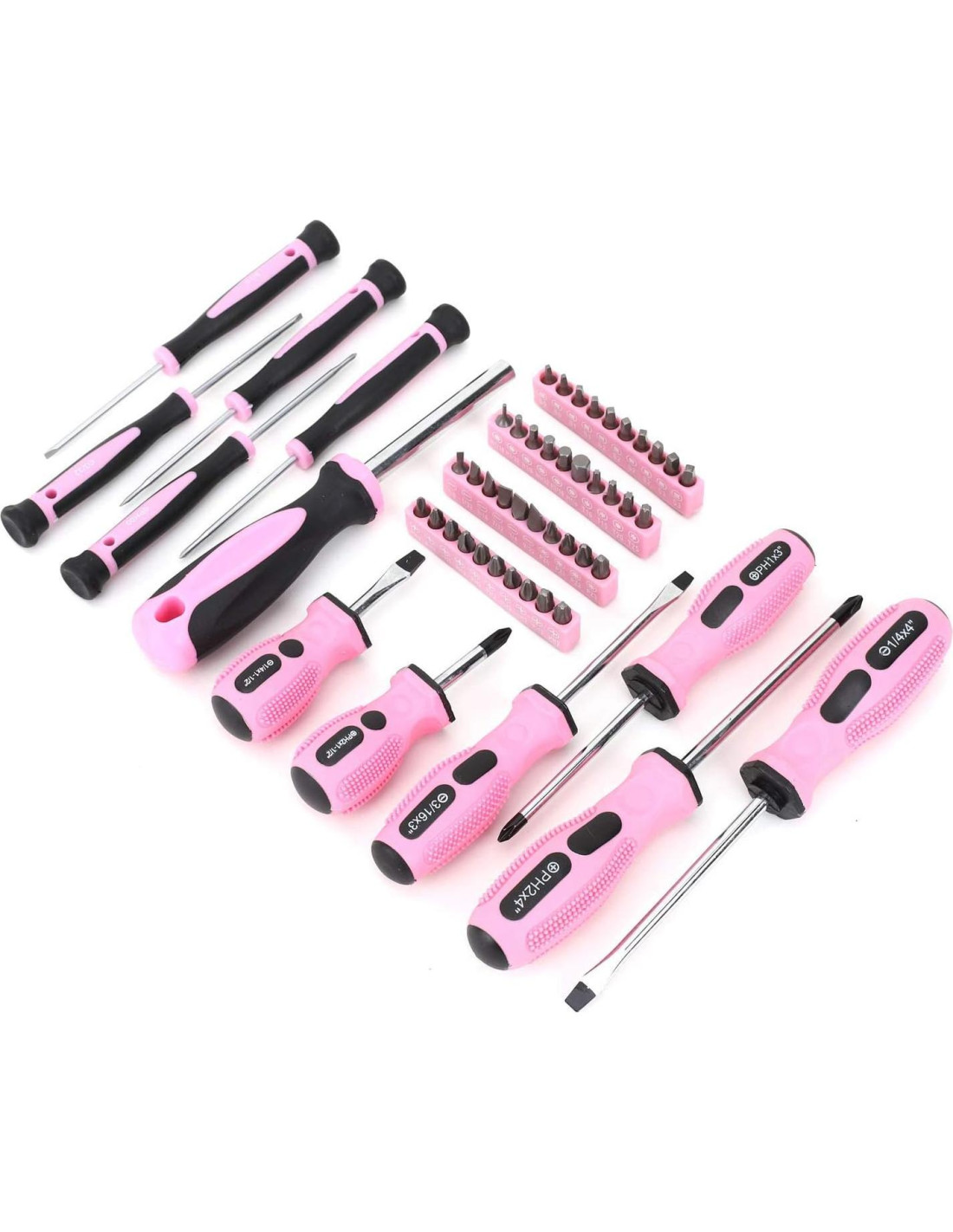 - El kit de herramientas rosa es perfecto para tu uso en casa o regalos.