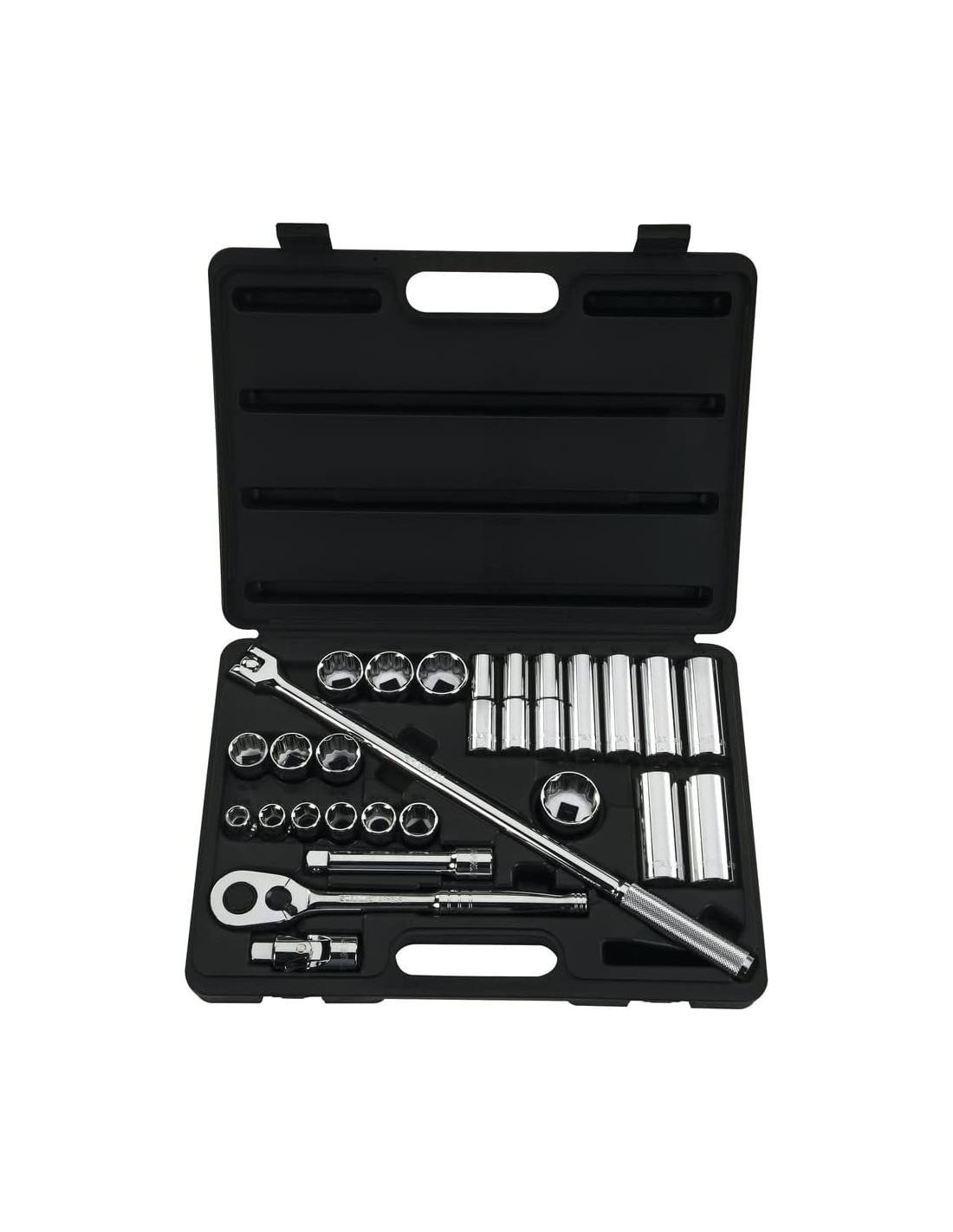 Descripción del Producto Con Stanley, puedes estar seguro de que tienes la herramienta adecuada para realizar el trabajo. El juego de 26 piezas de 1/2" Drive 6/12 Puntos de Stanley (SAE) incluye una variedad de tamaños, lo que lo hace perfecto para cualquier taller o garaje. Desde el Fabricante Durante más de 150 años, Stanley Tools ha sido uno de los nombres más reconocidos y confiables en herramientas y ferretería en el mundo. Ahora, Stanley ha creado Stanley Mechanics Tools para continuar con esa tradición. Las herramientas mecánicas de Stanley son una opción de alta calidad y asequible para tus aplicaciones industriales, comerciales y automotrices. Observa todas las ventajas de las herramientas mecánicas de Stanley. Las herramientas mecánicas de Stanley te ofrecen una amplia gama de opciones, incluyendo más de 750 productos separados, para que puedas encontrar una herramienta para cada trabajo. Stanley respalda cada herramienta mecánica de Stanley con una garantía de por vida. Las llaves y los sockets de las herramientas mecánicas de Stanley cuentan con el exclusivo sistema MaxiDrive, que proporciona potentes capacidades de torque y reduce el redondeo de los sujetadores. Las herramientas mecánicas de Stanley ofrecen una calidad excepcional a un precio asequible. Este juego incluye un trinquete reversible de 1/2" Drive; una extensión de 5" de 1/2" Drive; un mango de bisagra de 18" de 1/2" Drive; una junta universal de 1/2" Drive; sockets de 6 puntos de 1/2" Drive de 7/16", 1/2", 9/16", 5/8", 11/16" y 3/4"; sockets de 12 puntos de 13/16", 7/8", 15/16", 1", 1-1/16", 1-1/8" y 1-1/4"; sockets profundos de 12 puntos de 1/2", 9/16", 5/8", 11/16", 3/4", 13/16", 7/8", 15/16" y 1".
