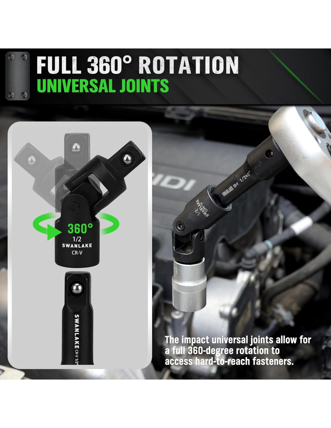 - RENDIMIENTO VERSÁTIL - Ya sea que estés alcanzando espacios reducidos con herramientas de extensión, cambiando ángulos con juntas universales, o utilizando sockets de diferentes tamaños de accionamiento con adaptadores, este conjunto cubre todas las necesidades mecánicas, proporcionando máximo par y eficiencia