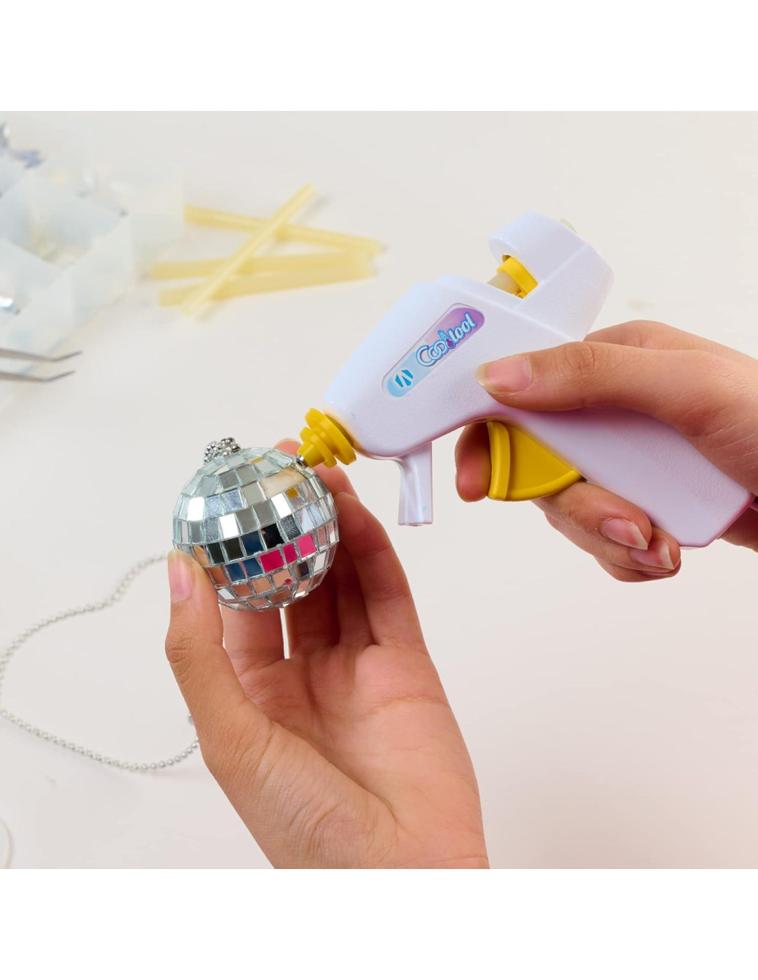 - Componentes incluidos: Pistola de pegamento con palos
