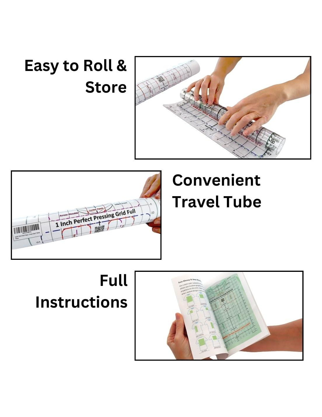 - Una regla para gobernarlas a todas: guía de regla para camisetas todo en uno para alineación de vinilo con marcas para cuellos de adulto, juvenil e infantil, además de todas las colocaciones gráficas estándar de camisetas claramente etiquetadas.