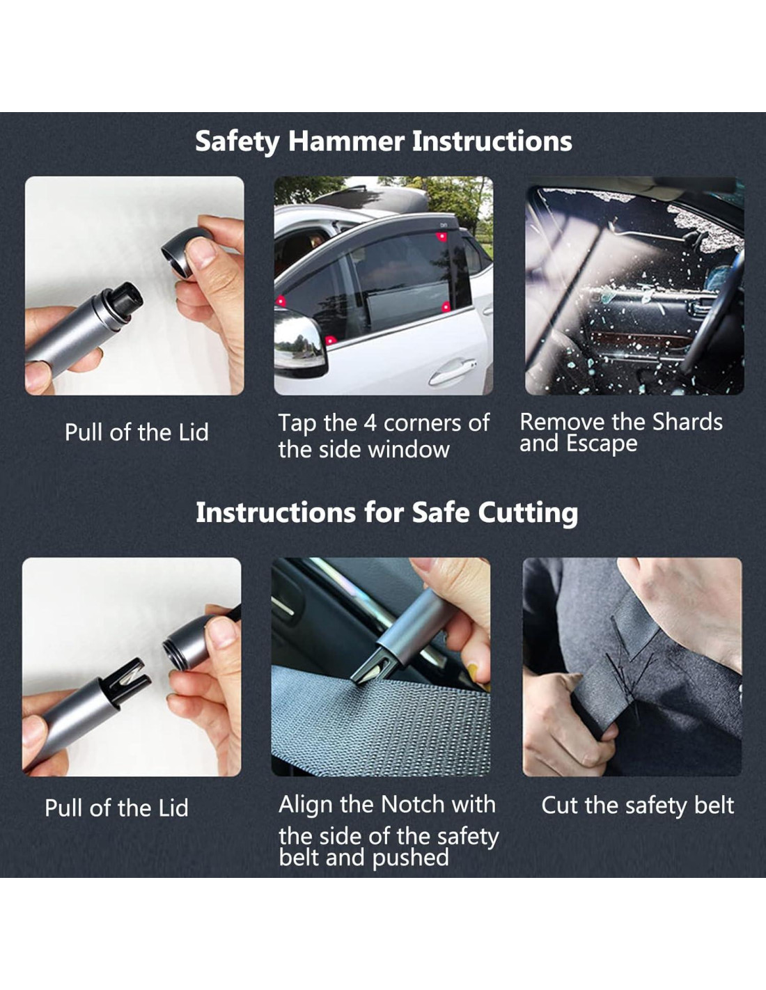 - [Cortador de Cinturón de Seguridad] El cortador de cinturón de seguridad de acero inoxidable incorporado adopta un diseño de borde de cuchillo oculto en forma de U, que es seguro y no lastima las manos. Corta rápidamente el cinturón de seguridad para escapar.
