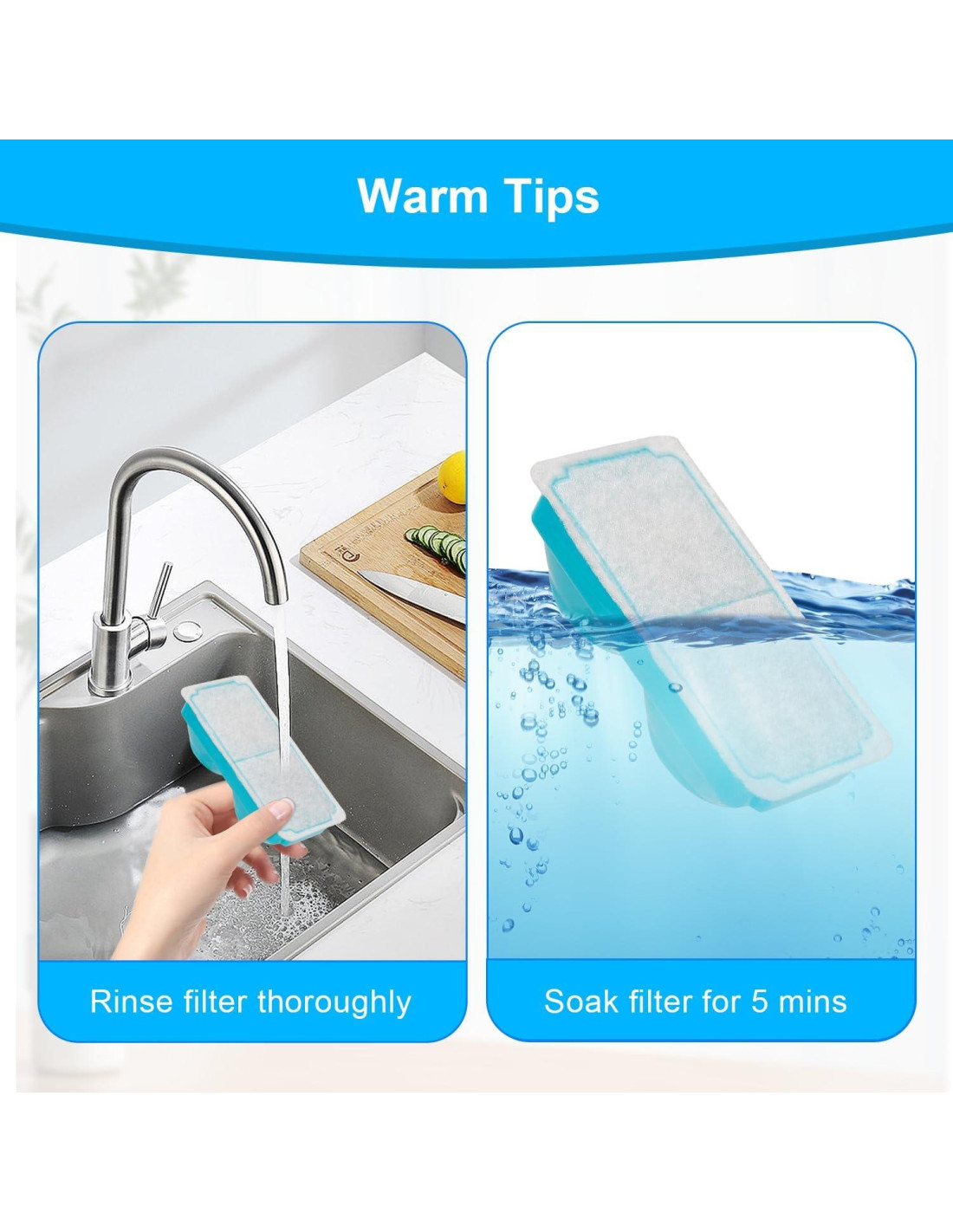 - Consejos: Nota: Por favor, enjuaga el filtro antes de usar. Reemplaza el filtro cada 2-4 semanas.
