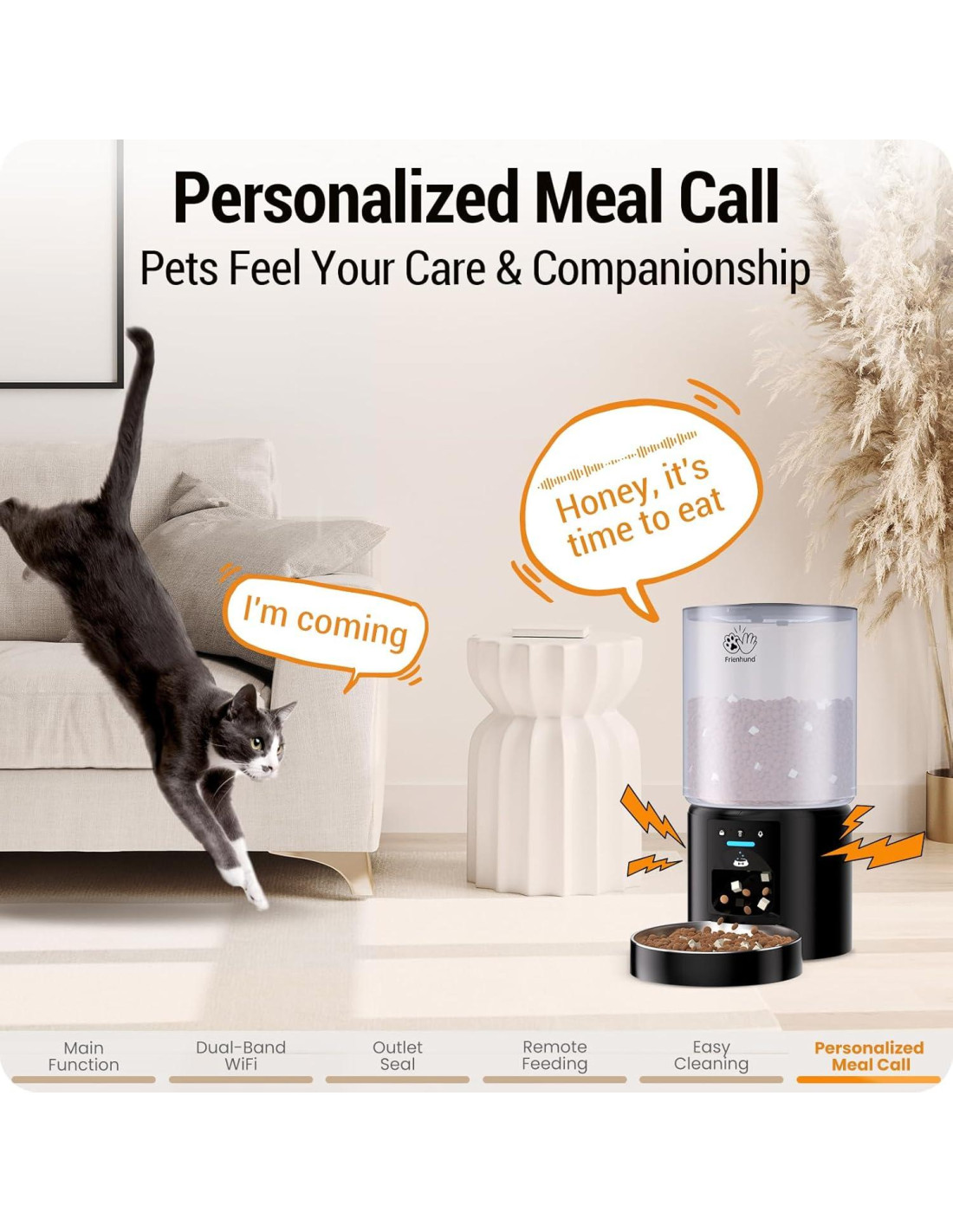 - Amantes de las Mascotas: Frienhund ofrece una garantía gratuita de un año y servicio en línea 24/7 para comederos automáticos. El comedero automático para gatos está diseñado para todos los amantes de las mascotas como yo, si tienes algún problema, puedes contactarnos por pedido, correo electrónico o teléfono. Resolveremos tu problema hasta que esté solucionado.