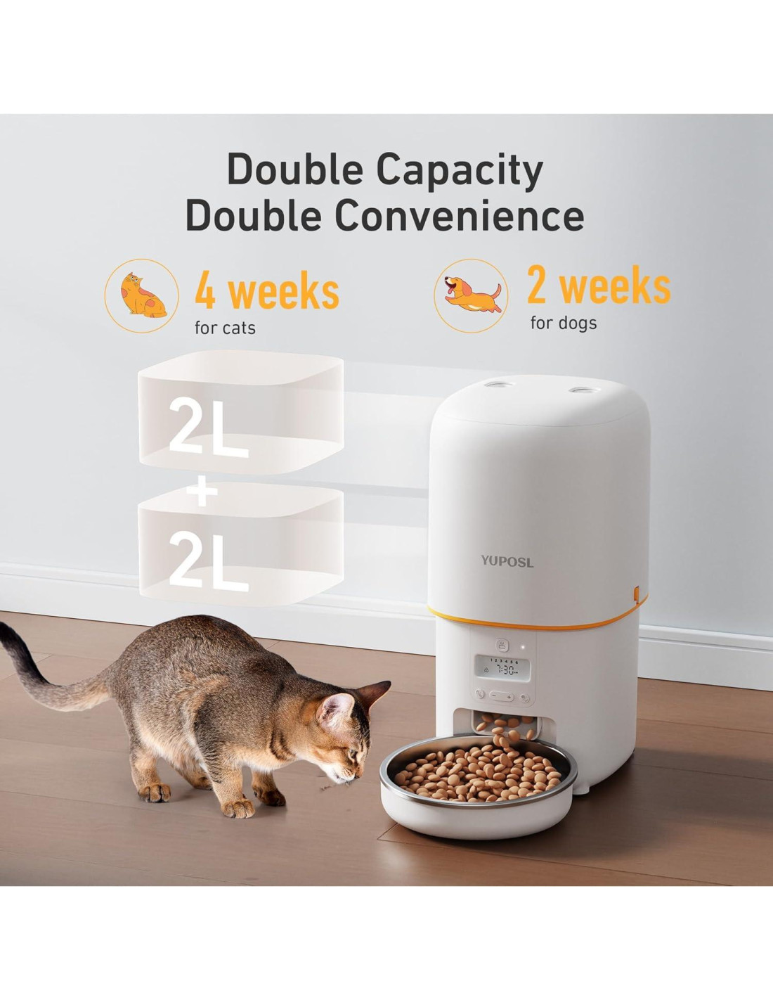 - Almacenamiento de Comida de Alta Capacidad: Con una capacidad de 4L/16.9 Tazas (1 Taza = 48 Cucharaditas), este comedero ofrece suficiente comida para mantener a tu mascota satisfecha durante días, reduciendo también la frecuencia de recargas. Perfecto para alimentar a tu gato o perro durante viajes o fines de semana ocupados; Disfruta de la tranquilidad que viene con una mascota bien alimentada y feliz.