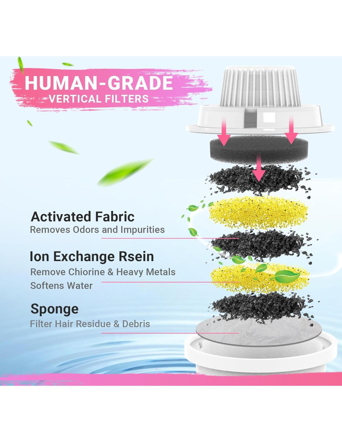 - Filtración vertical: El filtro de la fuente de agua para gatos tiene siete capas de filtración completas para eliminar efectivamente impurezas y mejorar el sabor del agua, asegurando que tu perro beba agua limpia y fresca