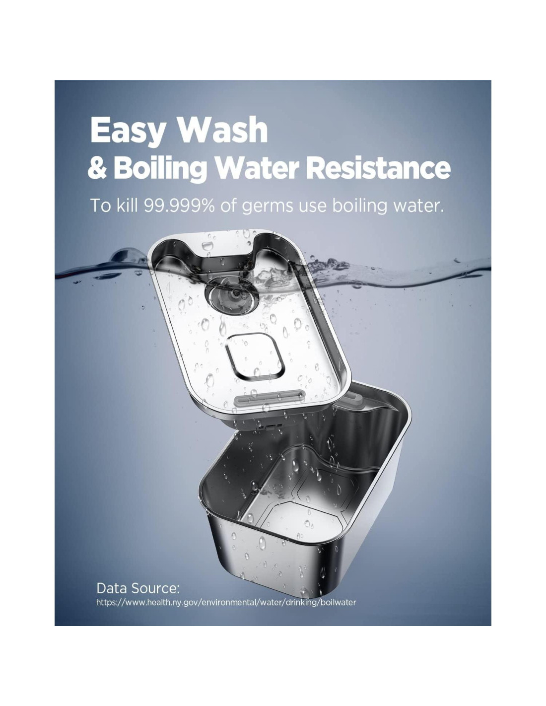 - FUENTE DE AGUA PARA MASCOTAS DE ACERO INOXIDABLE - El tazón de bebida en este modelo de fuente de agua de acero inoxidable tiene un diseño elegante que se ve genial en cualquier lugar de su casa o apartamento. Con la construcción duradera de la fuente para perros hecha de acero inoxidable 304 de grado alimenticio 100%, resistirá el uso diario durante años sin rasguños ni corrosión. Nuestra fuente de agua es libre de BPA y apta para lavavajillas.