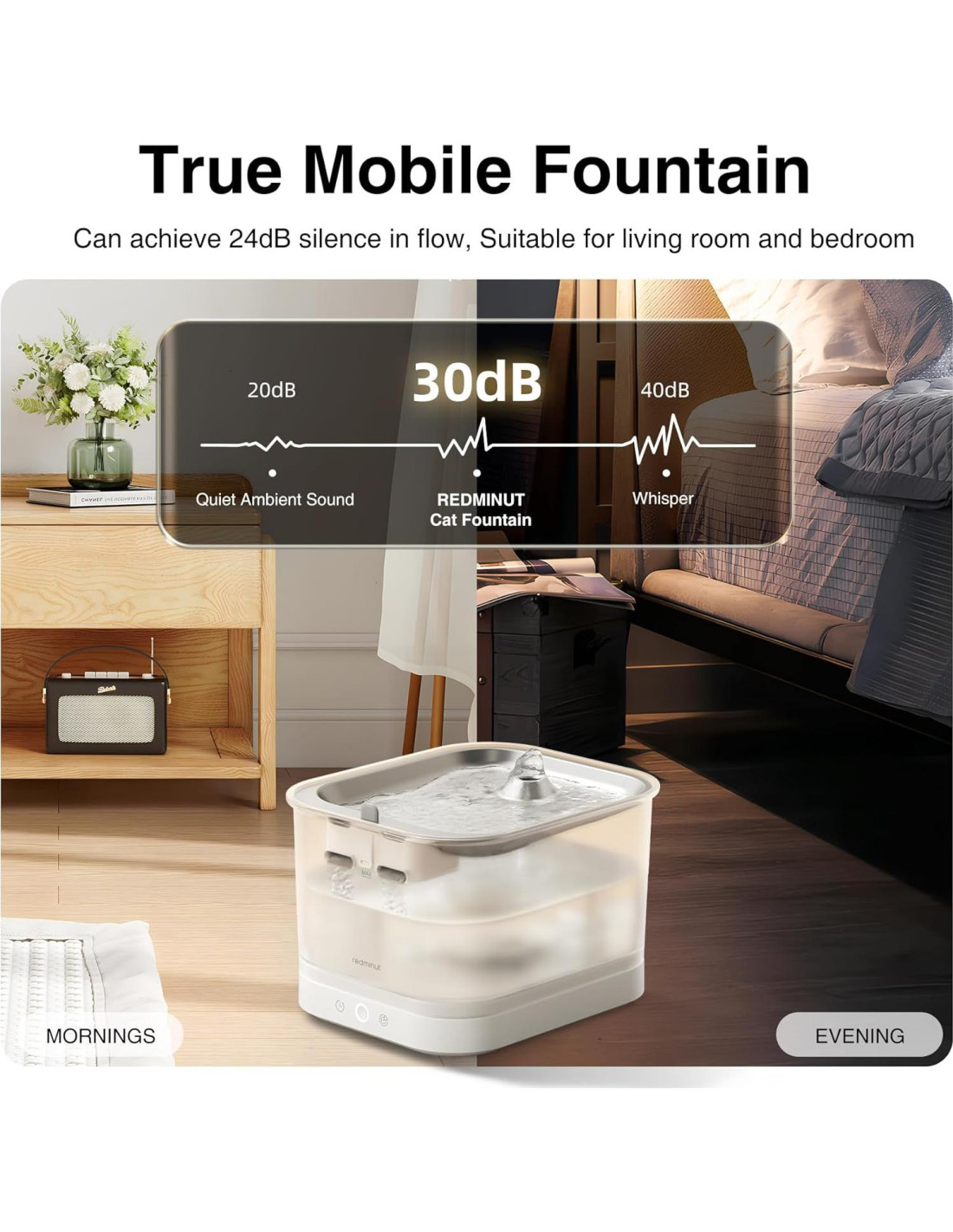 - Limpieza Generosa y Silenciosa: El diseño innovador de nuestra fuente de agua inalámbrica para gatos incluye un gran impulsor que previene obstrucciones y asegura una larga vida útil. Todas las partes del tanque de agua son fácilmente removibles y aptas para lavavajillas para una limpieza sin esfuerzo. Sistema avanzado de dispensación de agua para un funcionamiento silencioso, reduciendo el ruido a tan solo 23 decibelios - más silencioso que un susurro, perfecto para mantener en el dormitorio.
