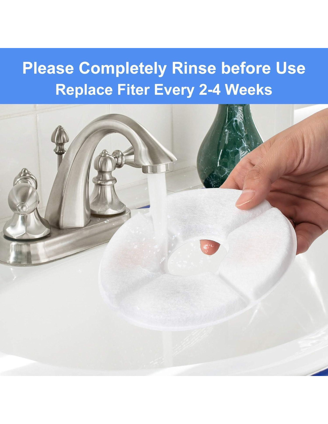 - Consejos de Uso y Paquete Individual: Por favor, sumerge el filtro de fuente para mascotas en agua durante 2 minutos y enjuágalo a fondo bajo agua corriente antes de usarlo para evitar que el polvo de carbón activado se derrame en el agua. Cada pieza está empaquetada y sellada individualmente para mantener alta calidad.
