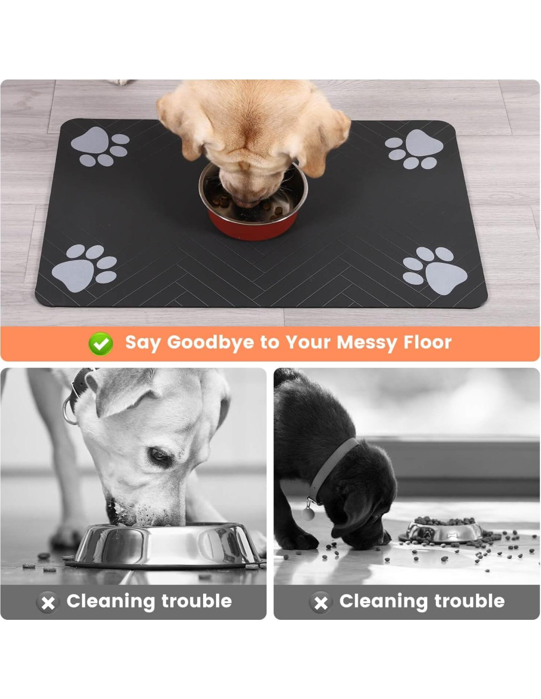 - [Fuerte Absorbente y Resistente a Manchas] Nuestra alfombrilla para comida de perro cuenta con una excepcional absorbencia, absorbiendo rápidamente cualquier agua y leche derramada y sin dejar rastros. Previene eficazmente las patas mojadas y mantiene limpia el área de alimentación de su mascota.