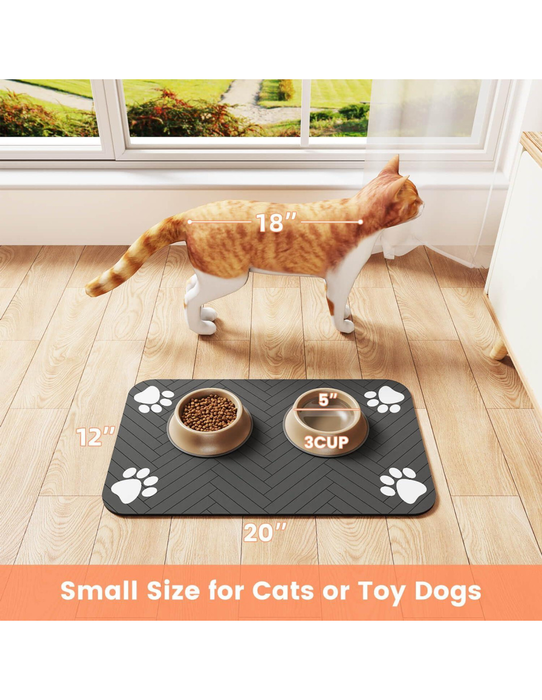 - [Suministros para Mascotas Versátiles] Adecuada para gatos, perros y otras mascotas, esta alfombrilla para comida de mascotas es ideal para sus necesidades de alimentación. El tamaño generoso proporciona amplio espacio para comer y beber, mientras protege eficazmente sus pisos.