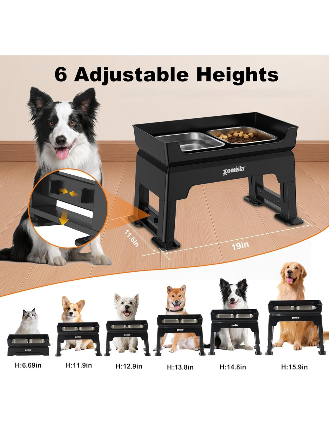 - Ajuste de Altura de 6 Niveles Más Amplio: Ofrece el rango de altura más personalizable en el mercado (6.7" (17 cm), 11.9" (30.2 cm), 12.9" (32.8 cm), 13.9" (35.3 cm), 14.8" (37.6 cm), 15.9" (40.6 cm)). Se adapta perfectamente desde cachorros hasta razas gigantes, perros mayores con problemas de movilidad y perros en recuperación de cirugía, asegurando comodidad óptima y reduciendo la tensión en el cuello/articulaciones.