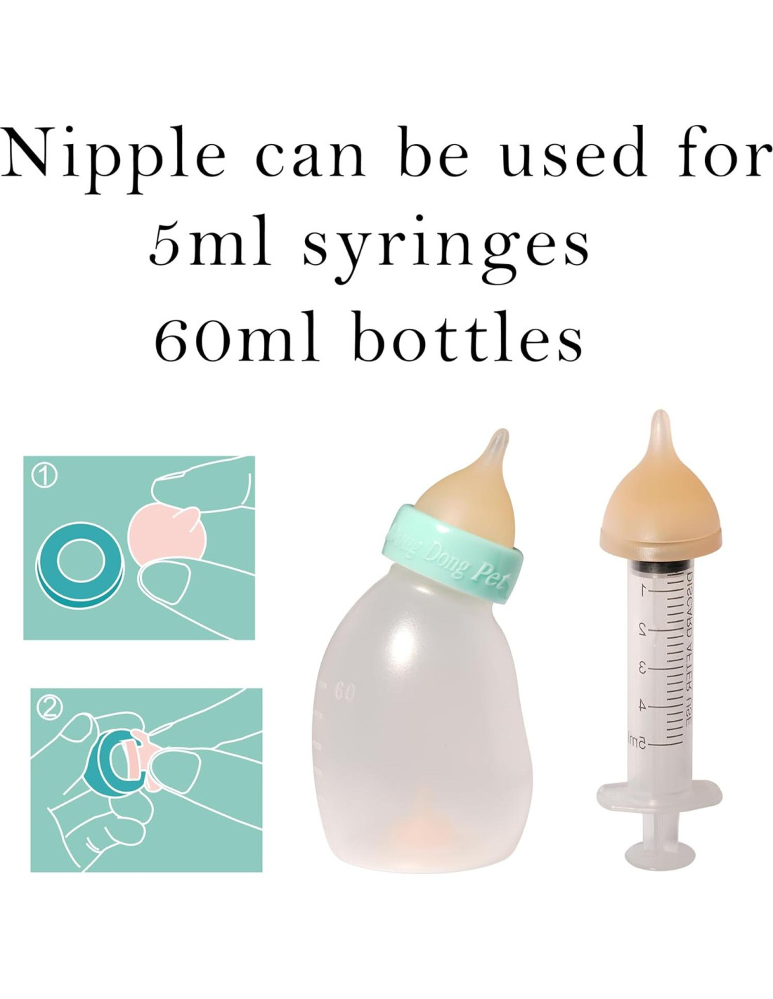 - El chupete se puede usar con jeringas de 5ml o biberones regulares para gatos