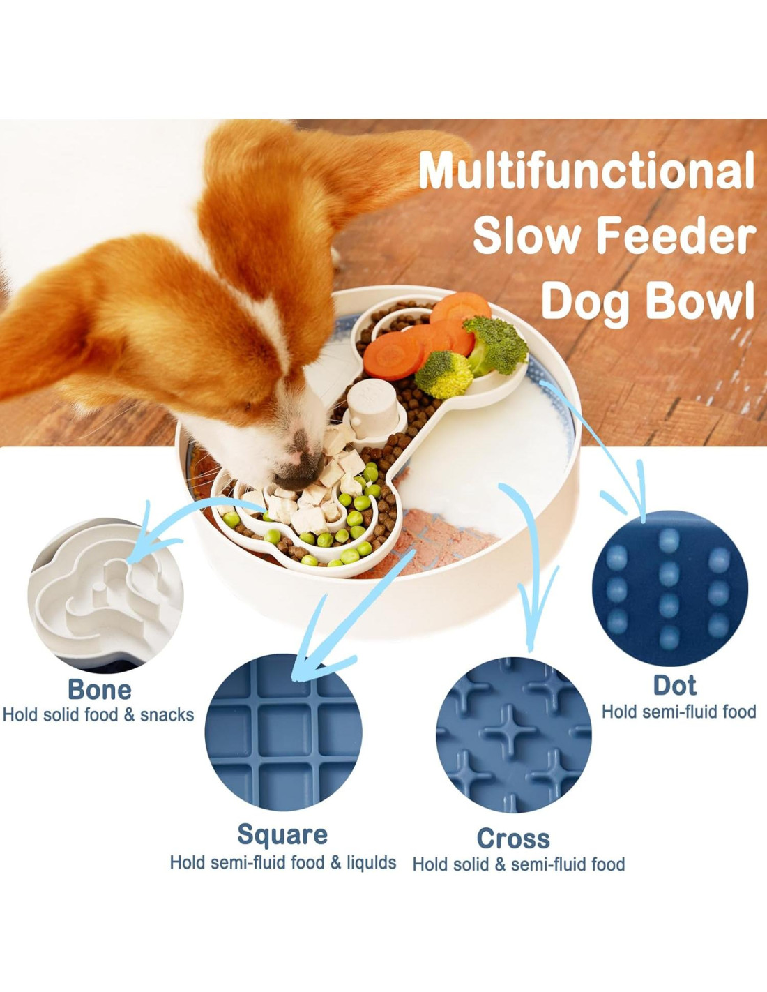 - CUENCO DE ALIMENTACIÓN LENTA 4 EN 1 - El cuenco de alimentación lenta para perros contiene múltiples estructuras de combinación, incluye plato de hueso, alfombrilla de lamido y cuenco de alimentación, que pueden cambiar entre 4 modos de alimentación diferentes para ralentizar efectivamente la velocidad de alimentación del perro. Puedes elegir libremente el modo para adaptarse a los hábitos alimenticios de tu perro, aumentando el tiempo de alimentación hasta 15 veces, Di adiós a atragantamientos, vómitos, hinchazón o enfermedades digestivas