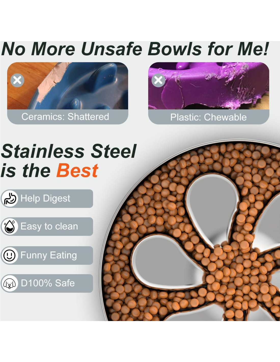 - ACERO INOXIDABLE 304 DURADERO: Los cuencos para perros de alimentación lenta Feedoo están hechos de acero inoxidable 304 (18/8) de alta calidad, que NO es fácil de criar bacterias o causar mandíbulas negras como el plástico, o romperse fácilmente como la cerámica