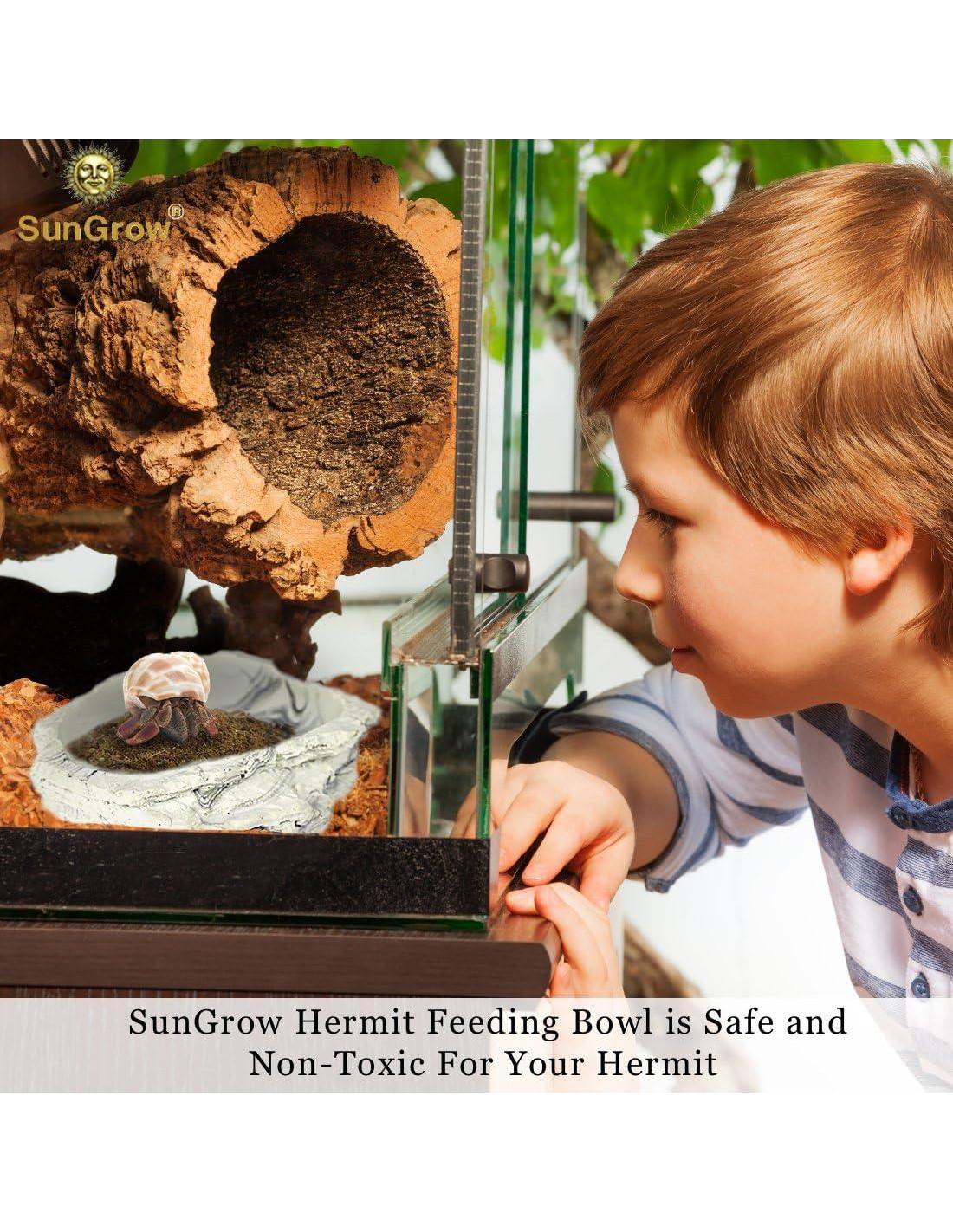- Duradero y Resistente --- Contener un lugar para mantener a tus mascotas cangrejos ermitaños en un terrario es importante para mantener la comida limpia y fresca. El Tazón de Alimentación para Cangrejos Ermitaños de SunGrow está hecho de concreto que pesa media libra (0.23 kg) con durabilidad comprobada. Es tan resistente que no se puede mover ni voltear fácilmente, por lo que tu mascota no caerá.