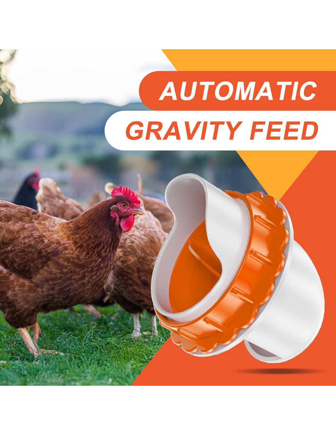 - Manténlo limpio y sin desperdicio: Solo coloca los comederos de pollo DIY en cualquier lugar de tu granja o gallinero, llénalo con alimento y los comederos de aves de corral serán impulsados por la gravedad. Alimenta a tus pollos de manera fácil, previene el derrame de alimento y no hay desperdicio. Los comederos para pollos pueden ahorrarte entre 15-33% de alimento y hacer que tu gallinero sea más limpio y cómodo.