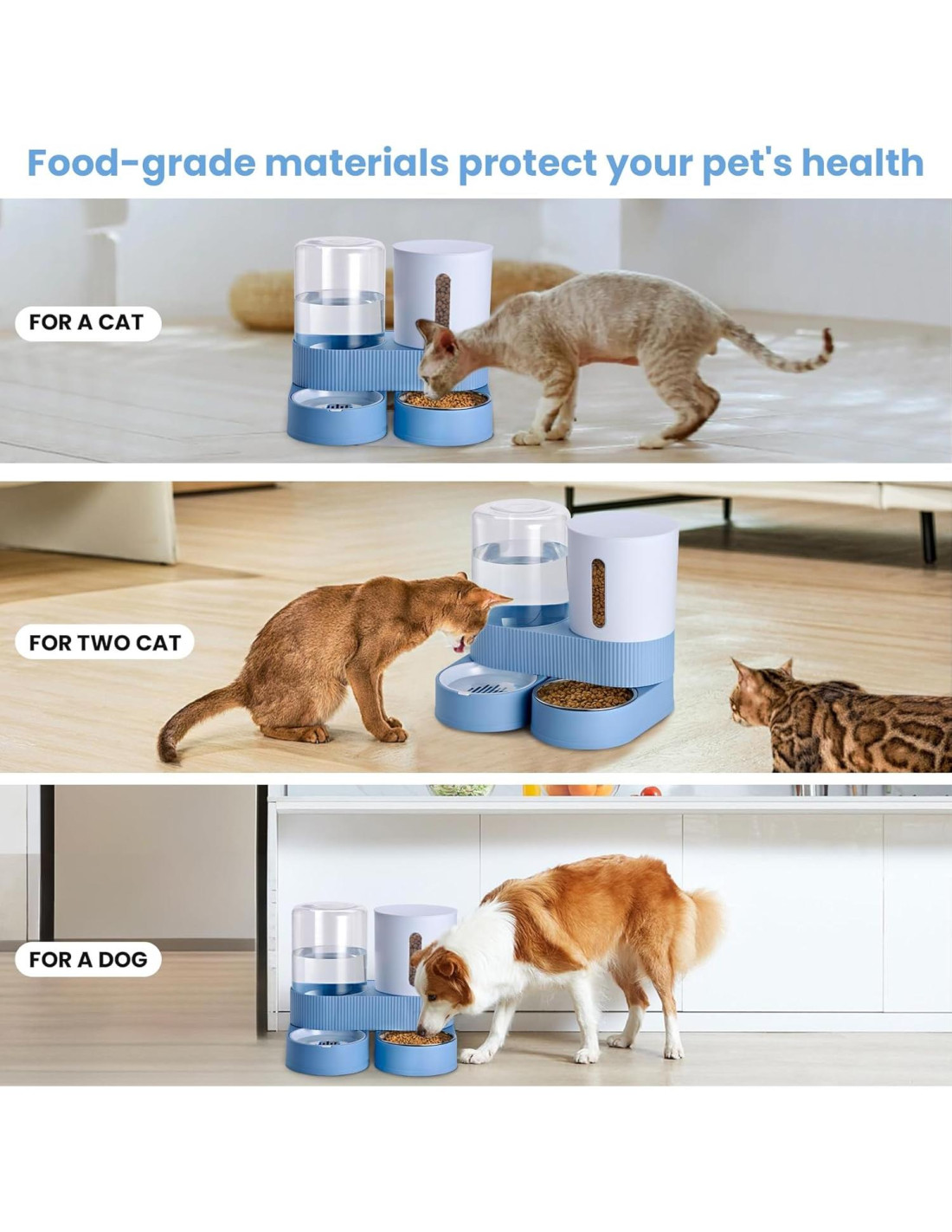 - [Gran Capacidad de Comedero para Mascotas] El comedero automático para mascotas puede contener aproximadamente 88oz (2.6L) de comida y aproximadamente 2.4L de agua, puede satisfacer las necesidades de mascotas medianas o grandes durante 3-7 días-ofreciendo tranquilidad durante viajes de negocios, escapadas de fin de semana o reuniones familiares, ya que las necesidades de alimentación de su mascota se gestionan de manera confiable.