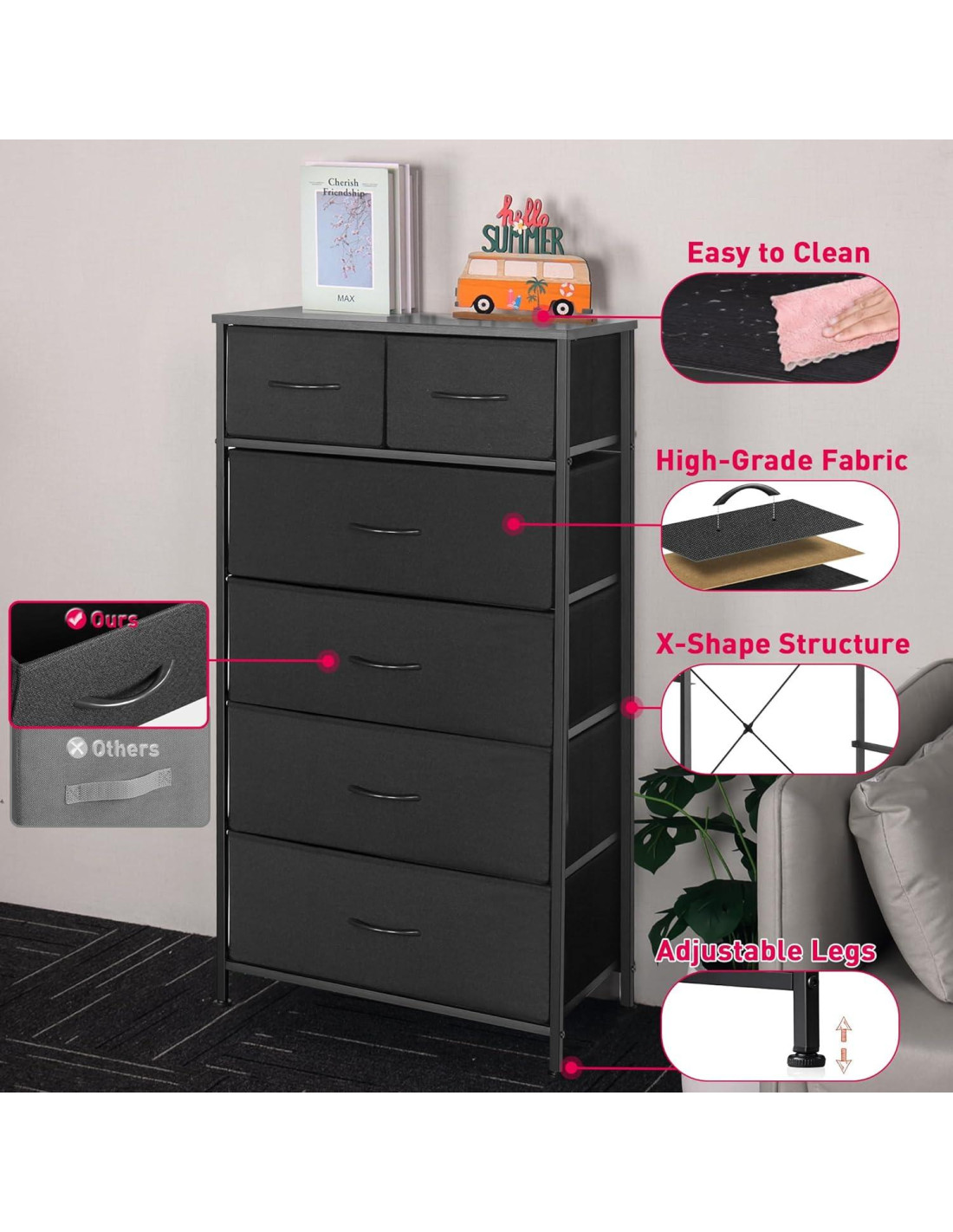 - [Seguro y Versátil] Hecho con tela no tejida transpirable y no tóxica, nuestra cómoda es adecuada para todas las edades. Su diseño vertical la hace lo suficientemente versátil para encajar en varias habitaciones: ya sea tu dormitorio, sala de estar, pasillo, armario o entrada. Los mangos de madera fijados a los frentes de MDF aseguran durabilidad y facilidad de uso incluso cuando está completamente cargada.