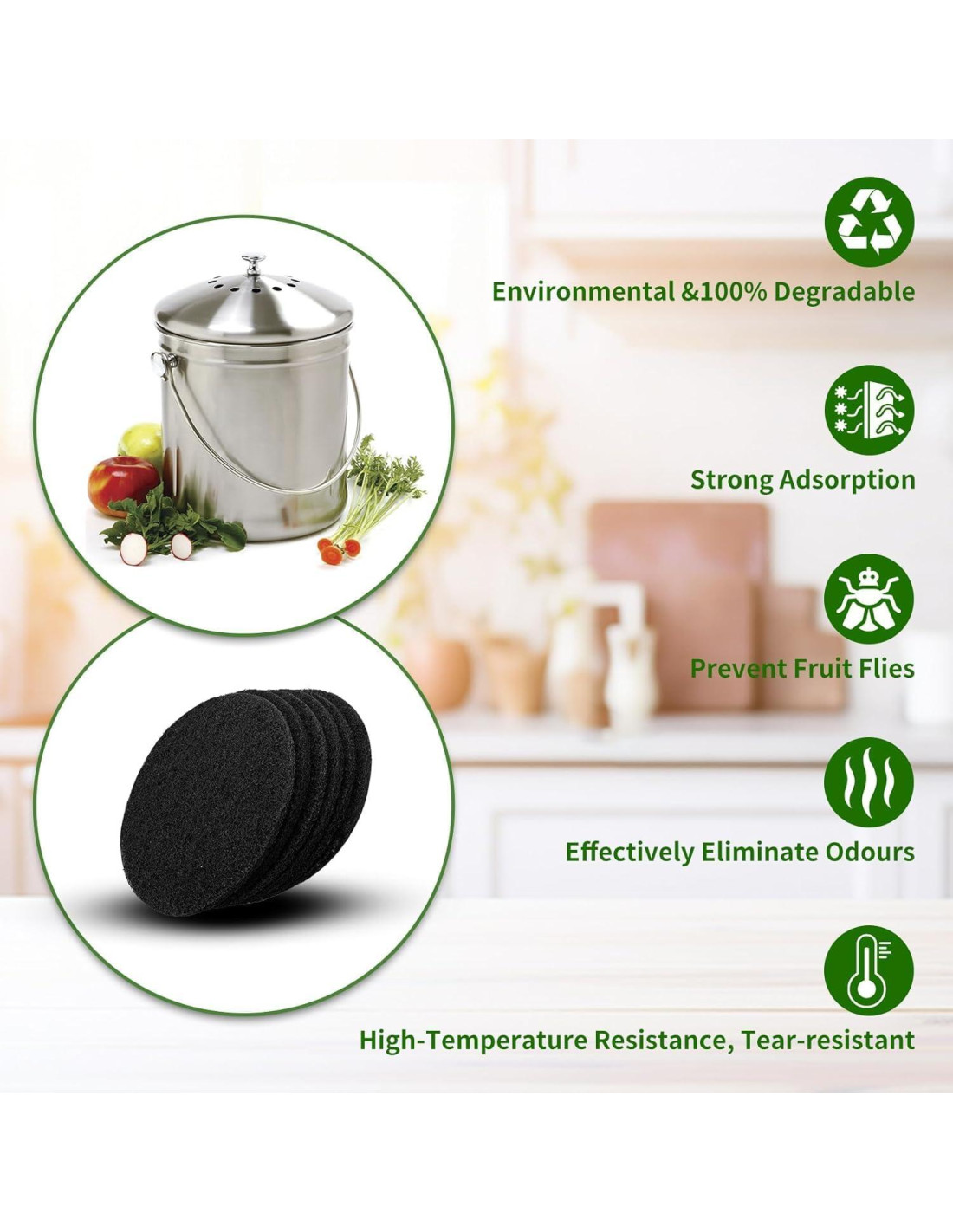 - Filtro de Cocina Ecológico y Seguro Nuestro filtro de carbón para cubo de compostaje está hecho de carbón activado de alta calidad, 100% biodegradable y ecológico, asegurando un impacto mínimo en el medio ambiente mientras proporciona un excelente rendimiento.