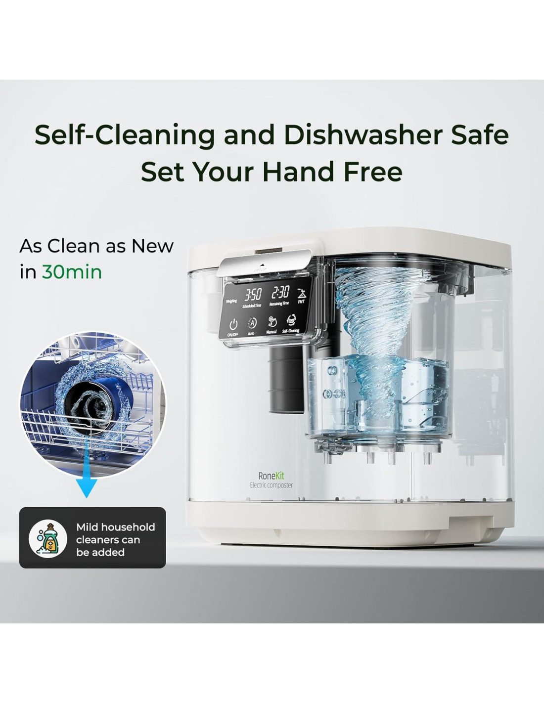 - Autolimpiante y Apto para Lavavajillas Tira los restos. Presiona iniciar. Aléjate. El duradero cubo antiadherente del compostador interior resiste desorden pegajoso-30 minutos de autolimpieza o tíralo en el lavavajillas. Sin fregar, solo pura conveniencia.