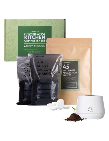 - Juego de Valor - Abastece tus esenciales para el pequeño compostador con este conveniente conjunto resellable que incluye 45 tabletas aceleradoras y dos bolsas de carbón activo de 0.5 lb. Agrega una tableta a un compostador lleno por ciclo y cambia el carbón activo según las instrucciones de tu compostador. Cada paquete de reemplazo de Impresa para el compostador de encimera Lomi y otros modelos durará hasta tres meses. ¡Obtén resultados de compostaje consistentes sin pedidos frecuentes!