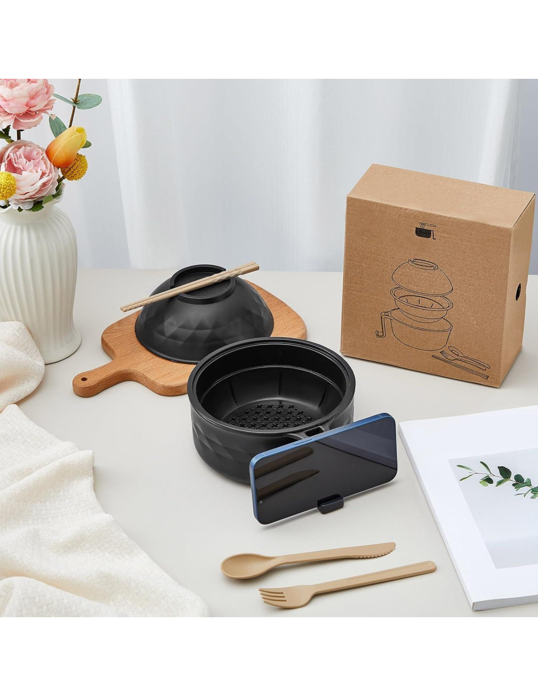 - [Gran capacidad] : tazón 800 ml, tapa 400 ml. La profundidad del tazón asegura que puedas contener suficientes fideos instantáneos, pasta, sopas, ensaladas e incluso cereales, lo que lo convierte en un utensilio de cocina versátil y esencial.