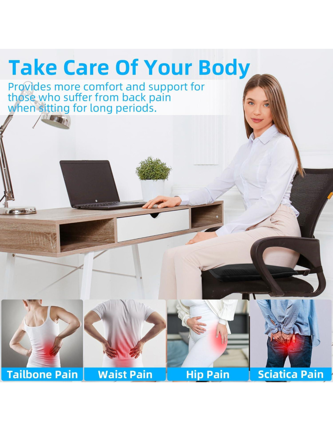 - Fresco y Transpirable: El cojín de silla de automóvil altamente elástico con diseño de rejilla tiene una excelente disipación de calor y transpirabilidad, reduciendo efectivamente el sudor en las caderas, y puede proporcionar una experiencia de cojín seca y fresca incluso en verano caluroso.
