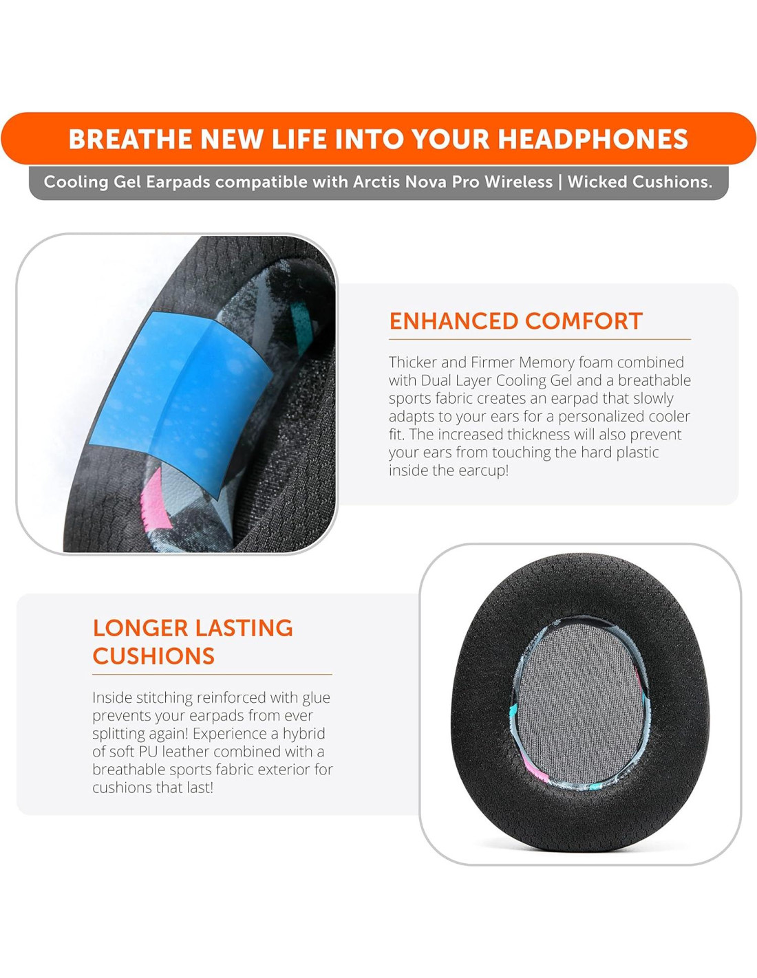 - Experimenta el FreeZe: ¿Te calientan las orejas después de varias horas de usar tus auriculares? Las almohadillas de gel refrigerante WC FreeZe compatibles con Arctis Nova Pro Inalámbrico mantienen tus orejas frescas por períodos más largos. Una combinación de gel refrigerante de Doble Capa (capa interior, capa superior) y una mezcla transpirable de tela deportiva y cuero te ayudan a sobrellevar esas largas sesiones de escucha.