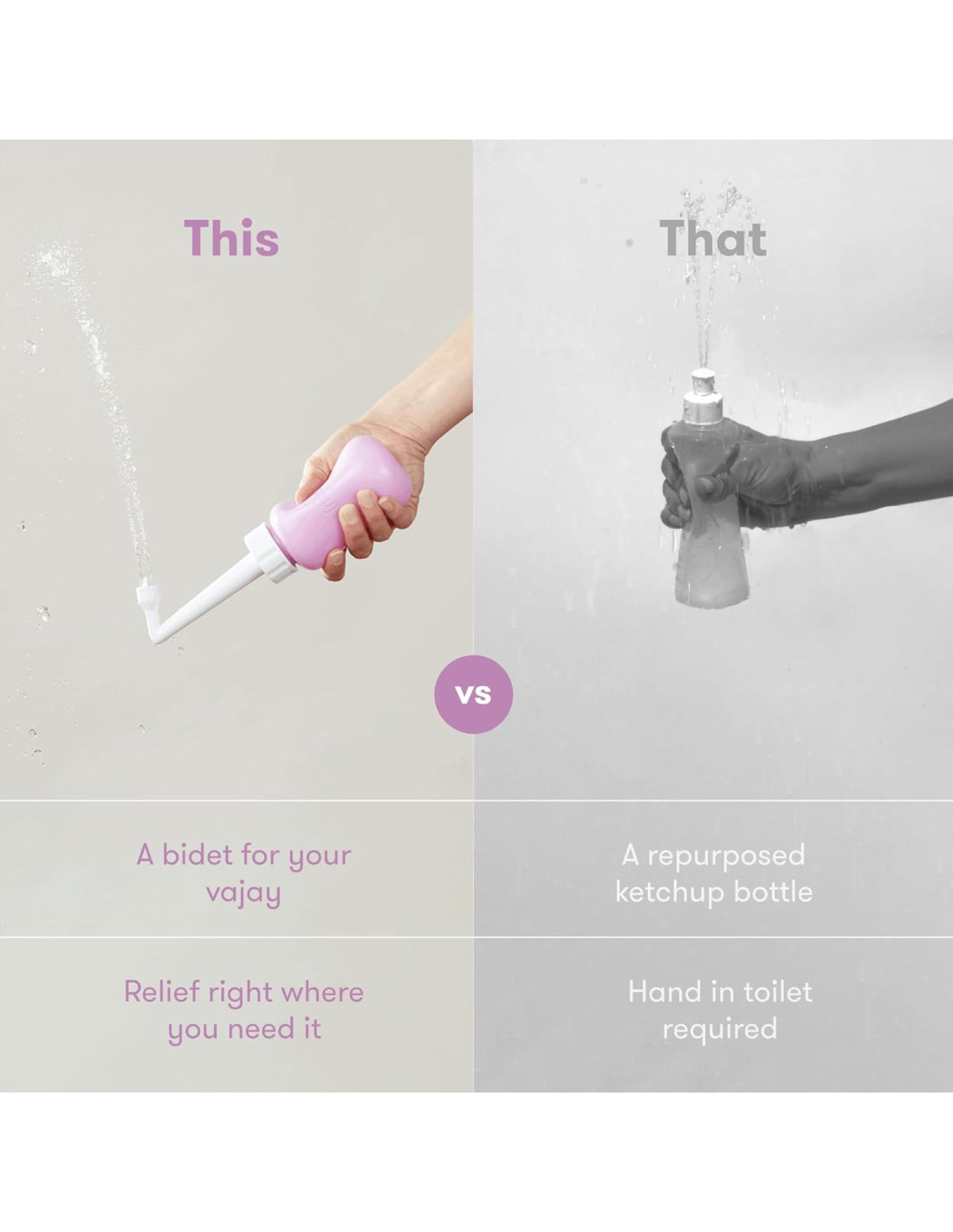 - BIDET PORTÁTIL: Úsalo durante el postparto, períodos menstruales o como un bidet portátil diario. Capacidad de 10 oz (295,74 ml).