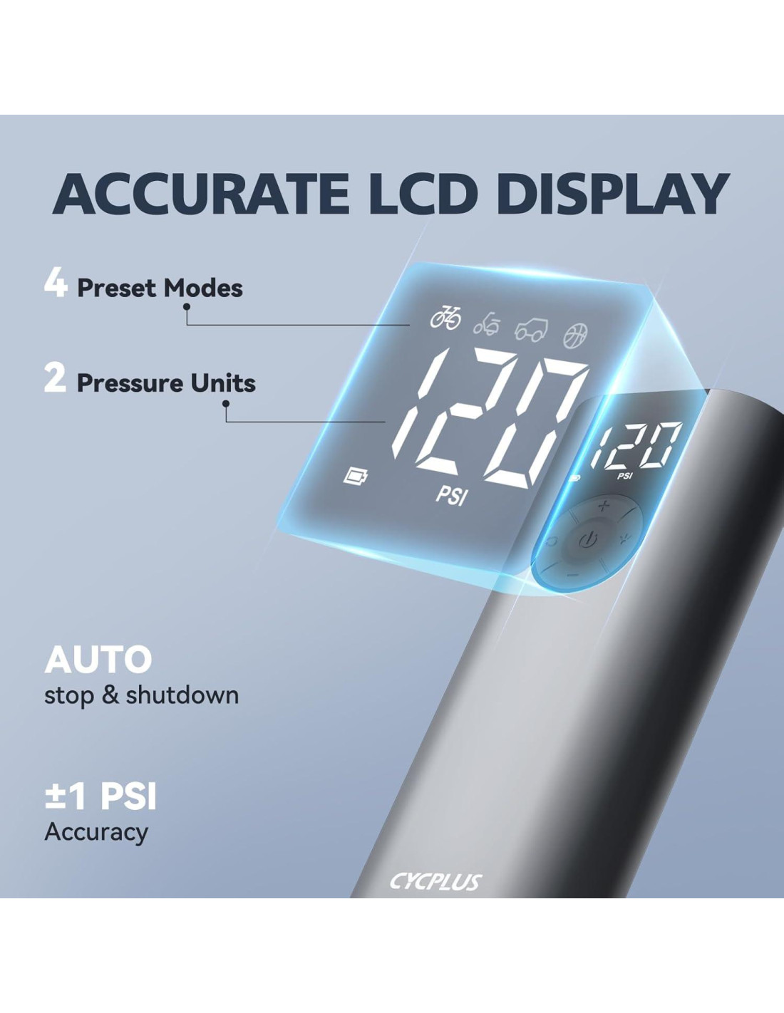 - PANTALLA LCD DIGITAL: Una amplia pantalla LCD inteligente proporciona una representación clara en tiempo real del nivel de presión. Y puedes disfrutar del apagado automático al alcanzar el valor preestablecido, previniendo la sobreinflación y asegurando un uso seguro.