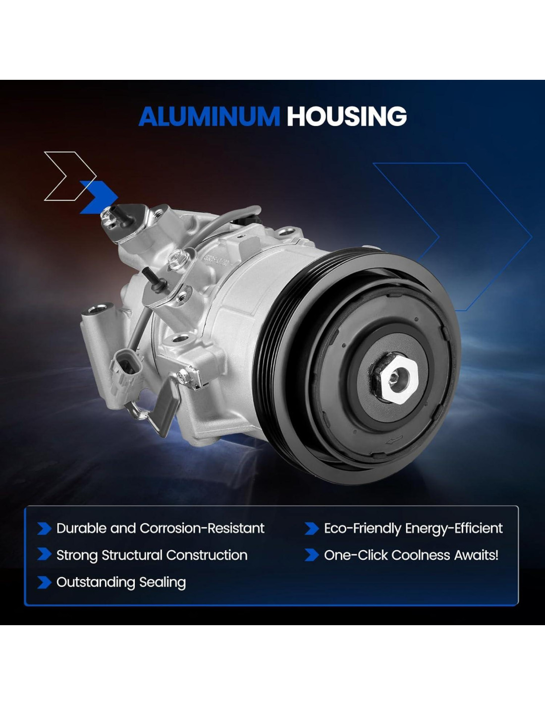 - Fácil instalación Mejore su vehículo con nuestros compresores de AC! Específicamente para R134a, viene con aceite PAG premium, juntas tóricas/arandelas de sellado y conectores de ajuste directo, asegurando una instalación sin complicaciones. Experimente un rendimiento de enfriamiento y confiabilidad óptimos; ¡devuelva la vida a su sistema de aire acondicionado hoy!