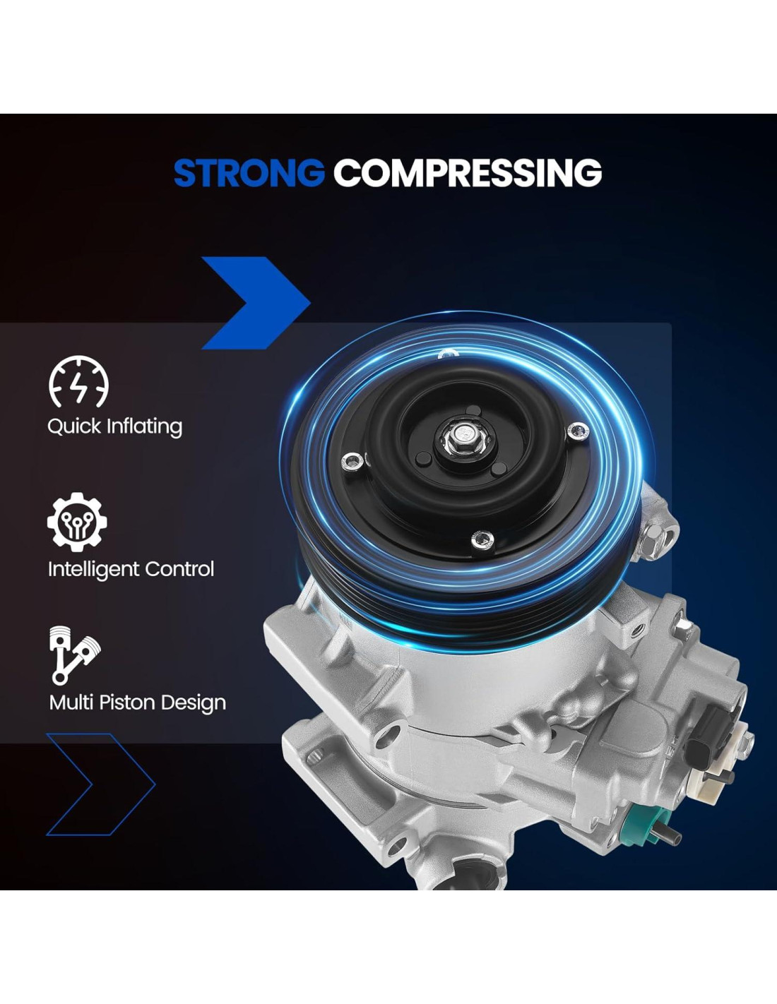- Fácil Instalación Mejore su viaje con nuestros compresores de A/C! Específicamente para R134a viene con aceite PAG premium, juntas tóricas/arandelas de sellado y conectores de ajuste directo, asegurando una instalación sin complicaciones. Experimente un rendimiento de enfriamiento y confiabilidad óptimos, ¡dé vida nueva al sistema de aire acondicionado de su vehículo hoy!