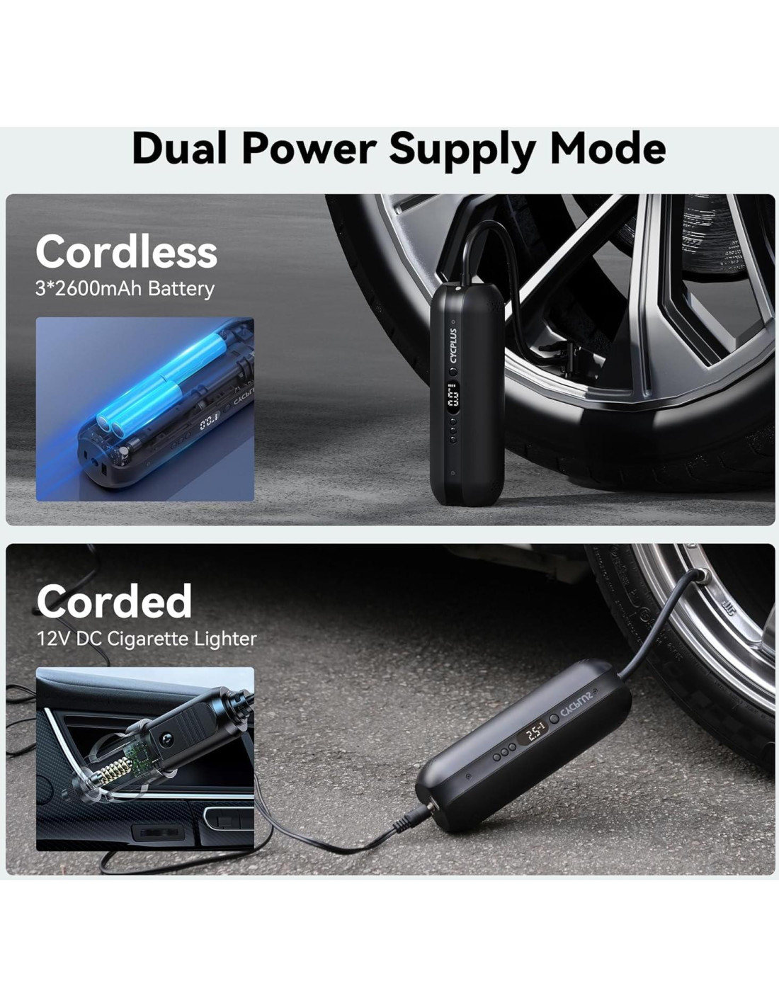 - [2X Velocidad de Inflado] : Equipado con batería recargable, este inflador de neumáticos entrega hasta 12L/min de flujo de aire, inflando un neumático 195/55R15 en solo 65 segundos con precisión de hasta 0.1bar - 2x más rápido que los modelos estándar. Perfecto para viajes largos, excursiones por carretera o desplazamientos diarios