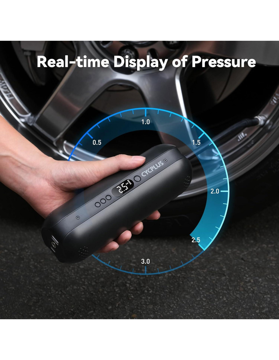 - [Salida AC/DC] : Inflador de neumáticos Cycplus A2 PLUS con carga única AC/DC. Tiene un enchufe de luz de cigarrillo de 12V para coche, así como un enchufe Type-C para el hogar, lo que hace que este inflador sea más útil ya que puedes usarlo en cualquier lugar y en cualquier momento.