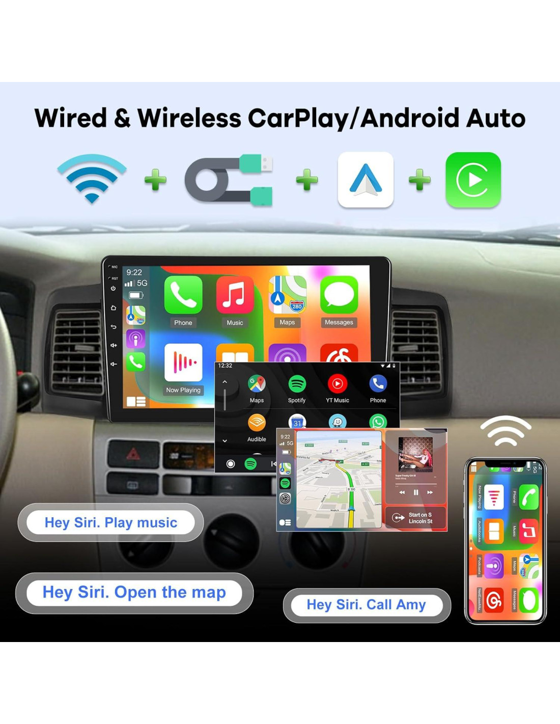 - [Carplay y Android Auto por Cable/Inalámbrico] El estéreo de Toyota Corolla es conveniente para que integres tu teléfono inteligente a través de la función Car Play o Android Auto (APP Z-Link) por cable/inalámbrico, lo que te permite hacer llamadas telefónicas, acceder a la navegación por mapas, etc. También puedes activar el Asistente de Voz para facilitar la operación.