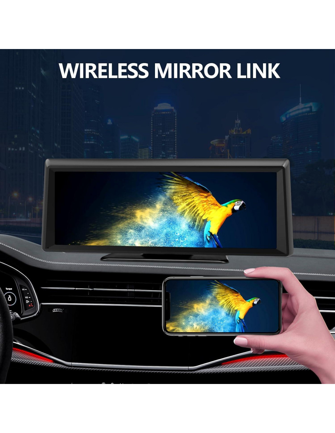 - ENLACE ESPEJO Y NAVEGACIÓN GPS - La pantalla CarPlay portátil soporta el espejo inalámbrico de iOS/Android para aplicaciones de streaming como YouTube y TikTok. Mapas sin conexión con actualizaciones de tráfico o espejo de aplicaciones de navegación del teléfono (Waze/Google Maps) para rutas flexibles.