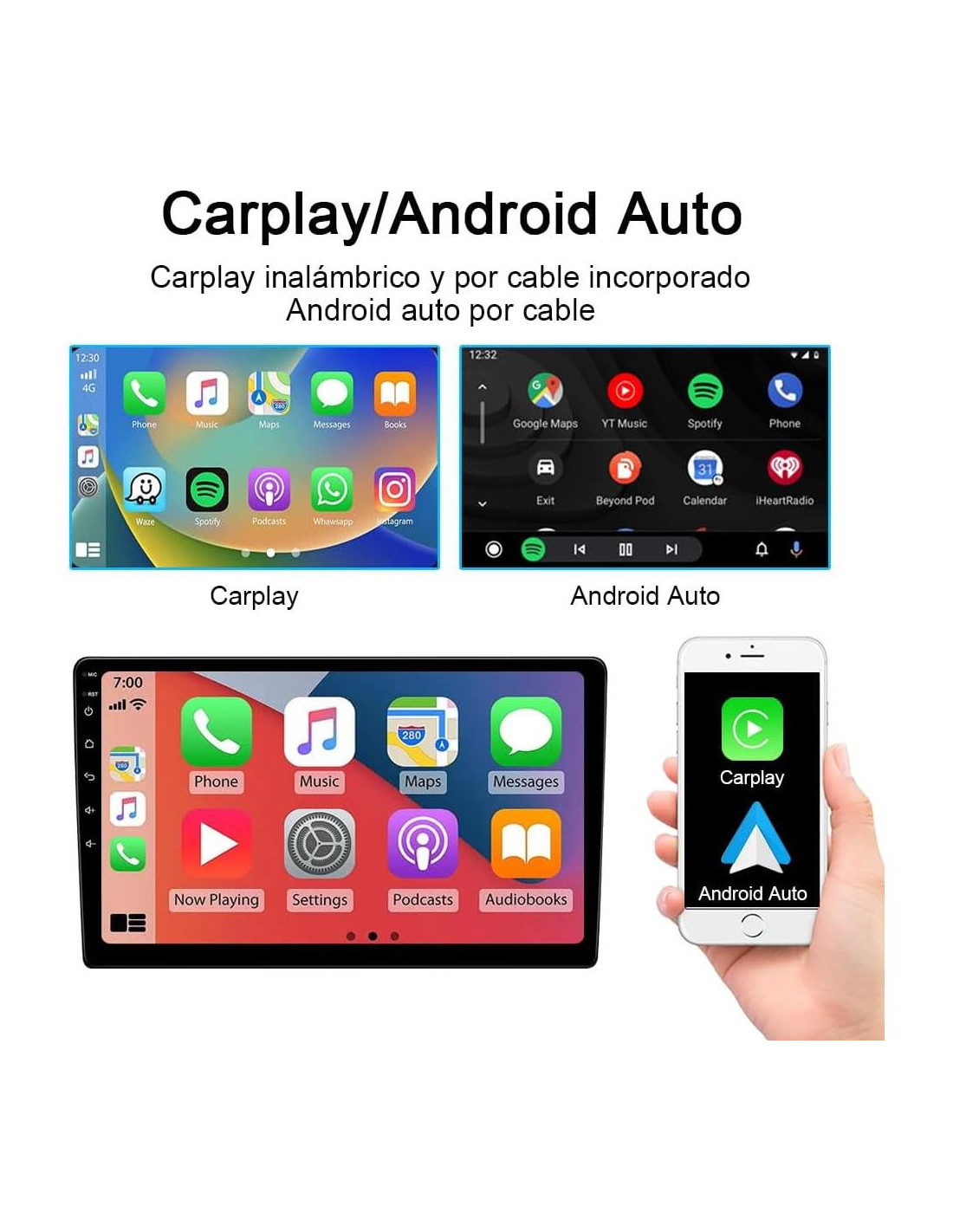 - [Carplay y Android Auto Integrados] Carplay Inalámbrico y Android Auto por Cable integrados, soporta usar asistente de voz inteligente o tocar la pantalla, puedes obtener direcciones, hacer llamadas, enviar y recibir mensajes, y disfrutar de música, etc. Una forma más inteligente, segura y divertida de usar tu teléfono en el coche, y mantenerte enfocado, conectado y entretenido.