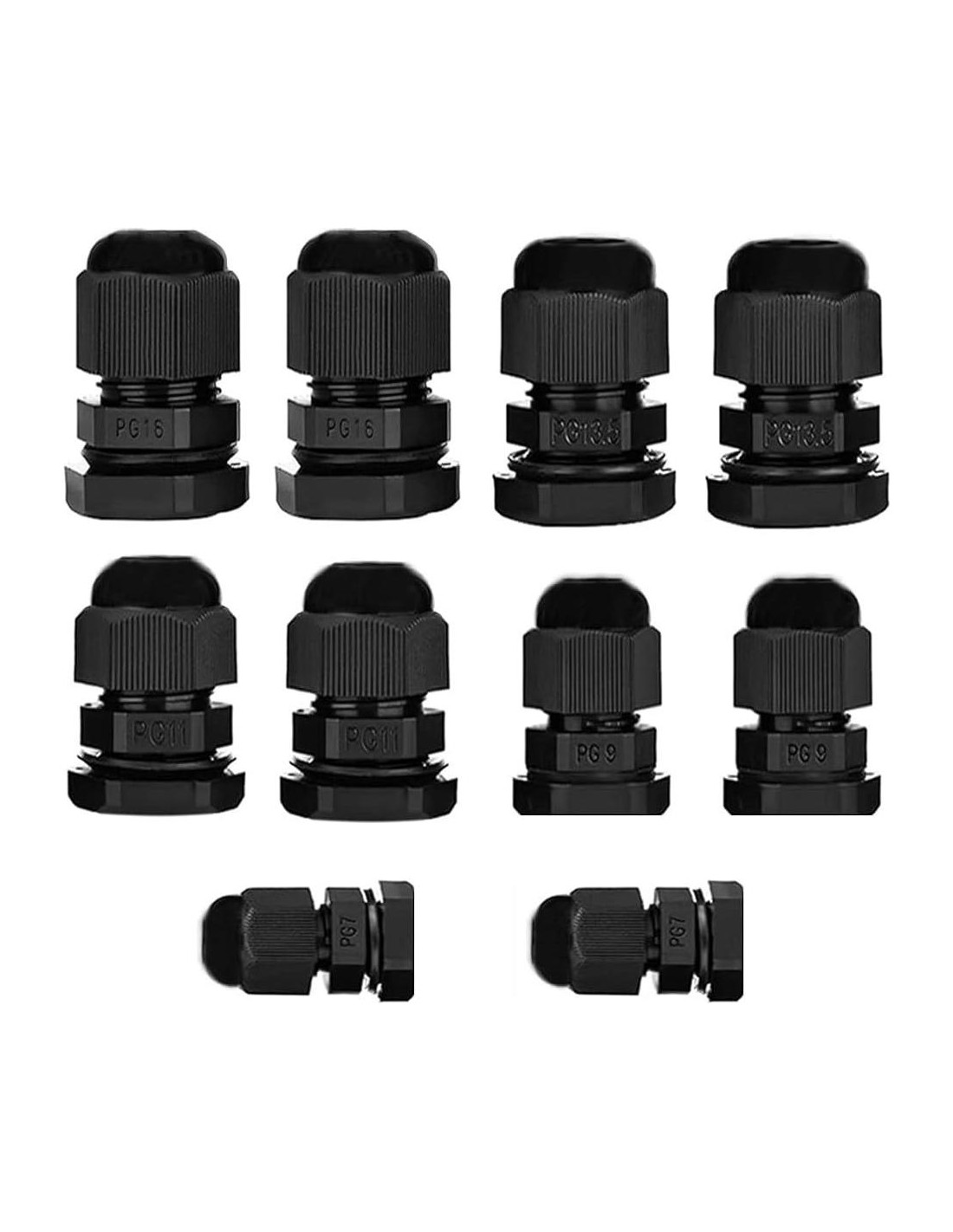 - Kit de Conectores de Cable de Nylon 3-13mm Conectores de Cable Impermeables Conector de Alivio de Tensión de Cable de Plástico Negro a Prueba de Climas Pasaje de Cable PG7 PG9 PG11 PG13.5 PG16