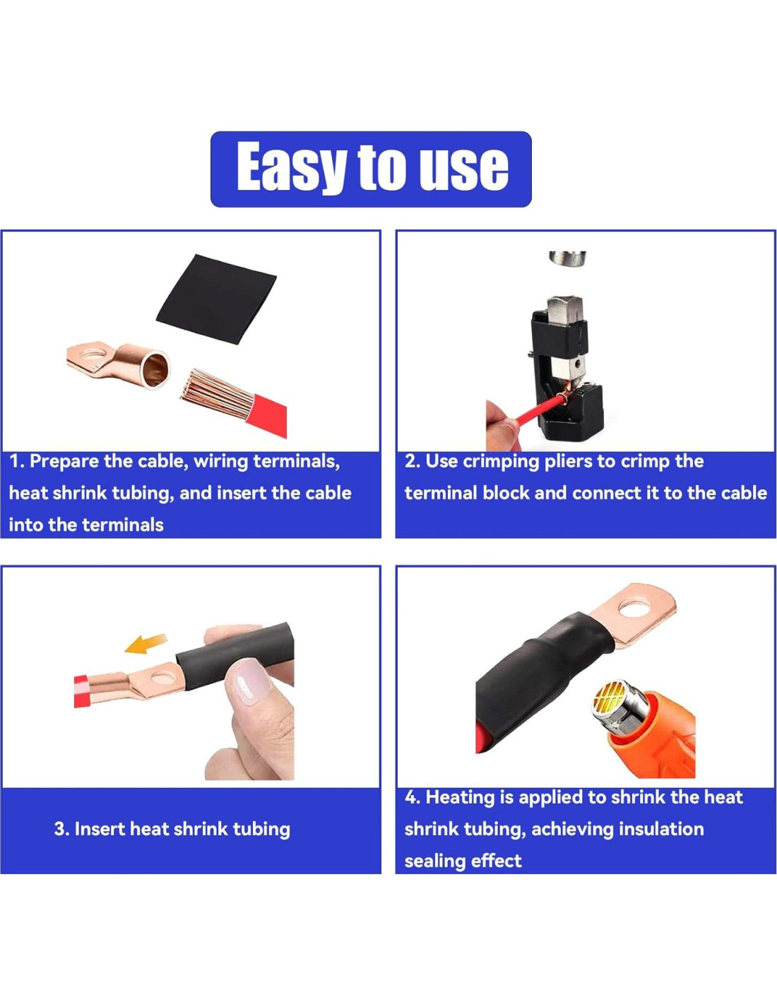 - 2. Alta calidad: Todos los terminales de anillo están hechos de cobre de grado electrolítico recocido, que puede lograr la máxima conductividad. Todos los tubos termocontraíbles 3:1 están hechos de materiales de alta calidad, gruesos y duraderos, por lo que sus cables nunca se saldrán del conector