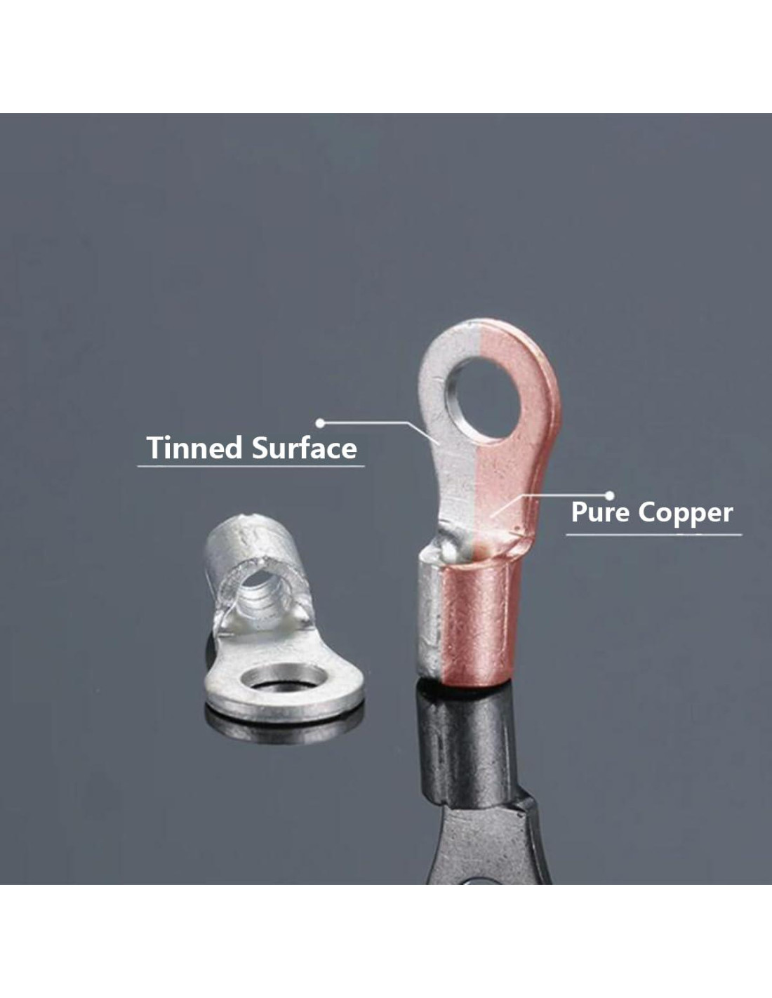- Larga vida útil -- Estos kits de conectores de crimpado de anillo para terminación eléctrica están hechos de cobre rojo, que tiene buena conductividad eléctrica para soportar las cargas del circuito encontradas en sistemas eléctricos automotrices. La superficie está chapada en estaño para resistencia a la oxidación y a la corrosión.