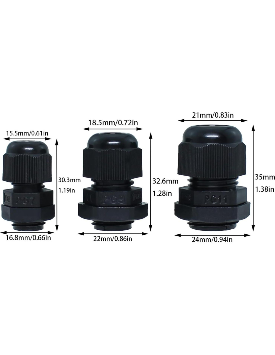 - El paquete incluye: 15pcs de prensaestopas (5pcs PG7, 5pcs PG9, 5pcs PG11)