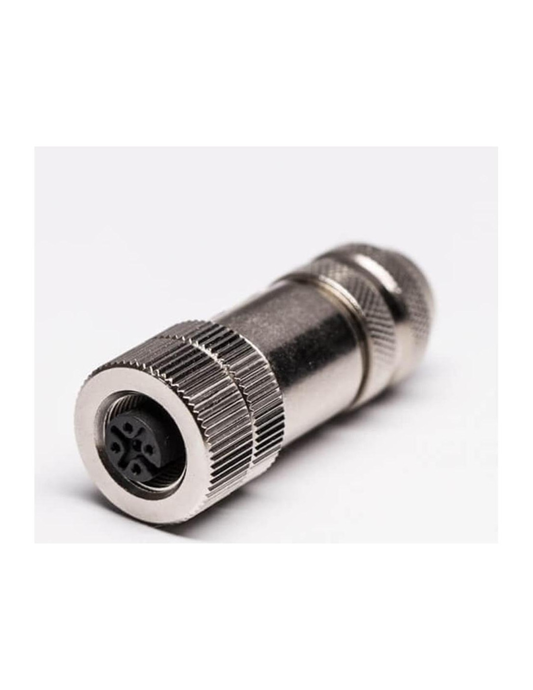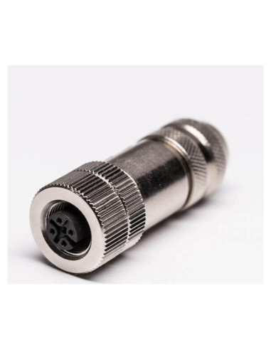 - M12, A Code, Conectable en campo, 4 pines, Hembra, Recto, Unión de tornillo, Blindaje