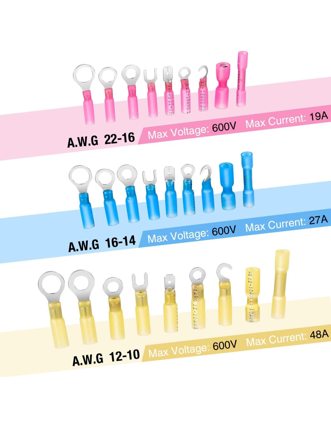 - Color: 540Pcs Mezcla de Terminales Termoretráctiles
