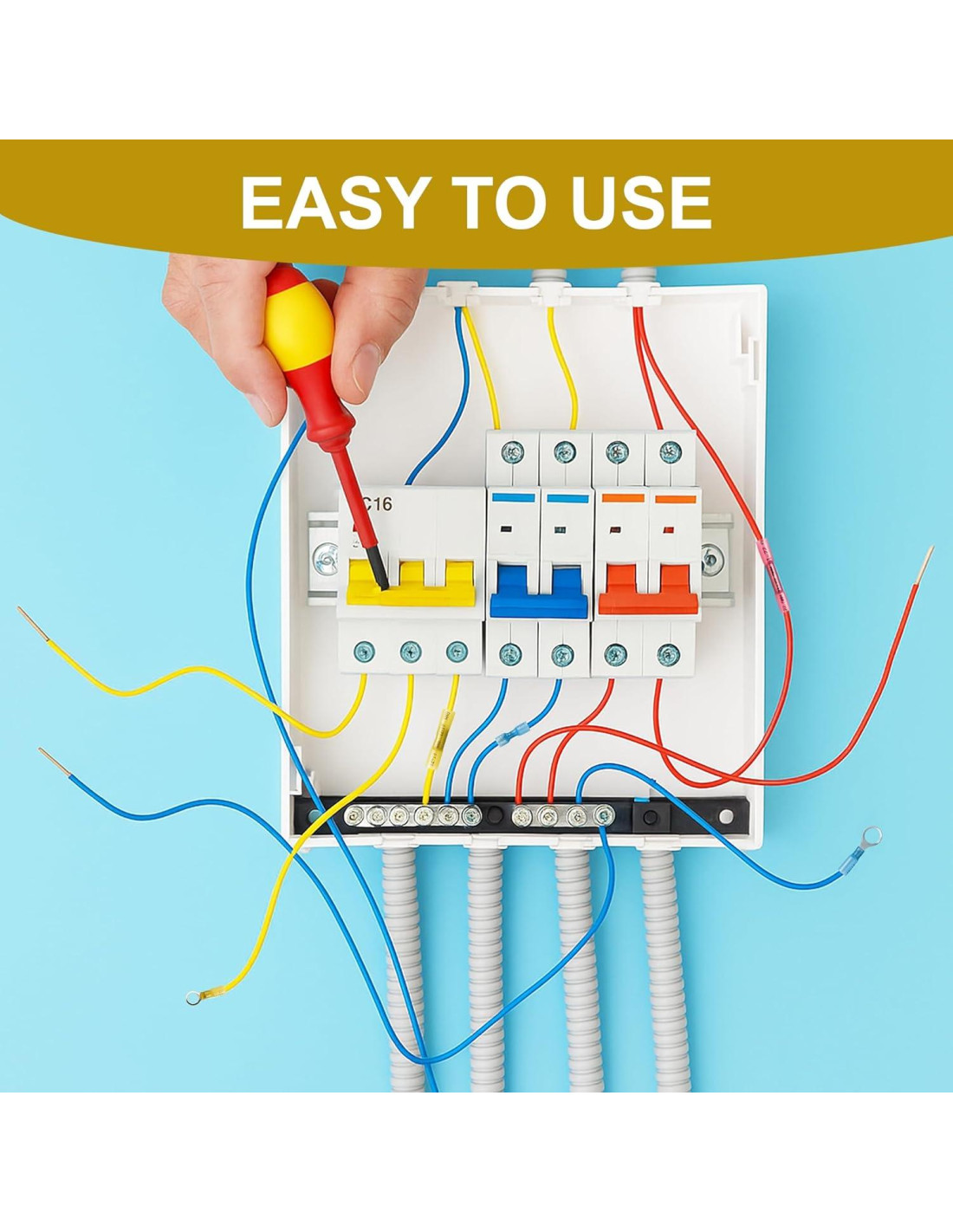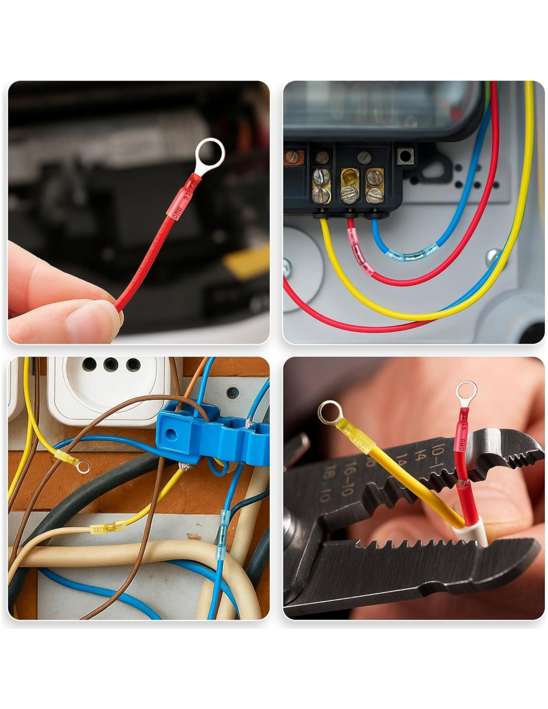 - INCLUYE PAQUETE: El kit de conectores eléctricos es duradero y codificado por colores para un fácil uso. Incluye conectores de 22-16, 16-14 y 12-10 AWG, con cada calibre correspondiente a un color específico para una identificación rápida. El kit de terminales de anillo contiene una variedad de tipos de conectores, incluidos conectores de empalme, terminales de anillo (en tamaños #10, 1/4 pulgadas (6.35 mm), 5/16 pulgadas (7.94 mm) y 3/8 pulgadas (9.53 mm)), desconectores rápidos macho y hembra, y un kit de terminales de horquilla, asegurando un cableado rápido y sin complicaciones para diversas aplicaciones.