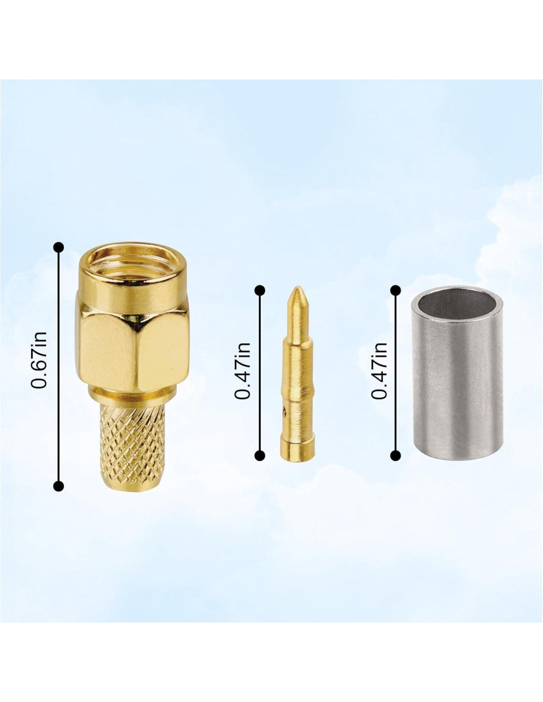 - [Tipo de Cable Crimp] Este conector crimp macho SMA funciona muy bien para cable coaxial de 50ohm RG58/RG142/RG400/LMR195 o tipo similar.